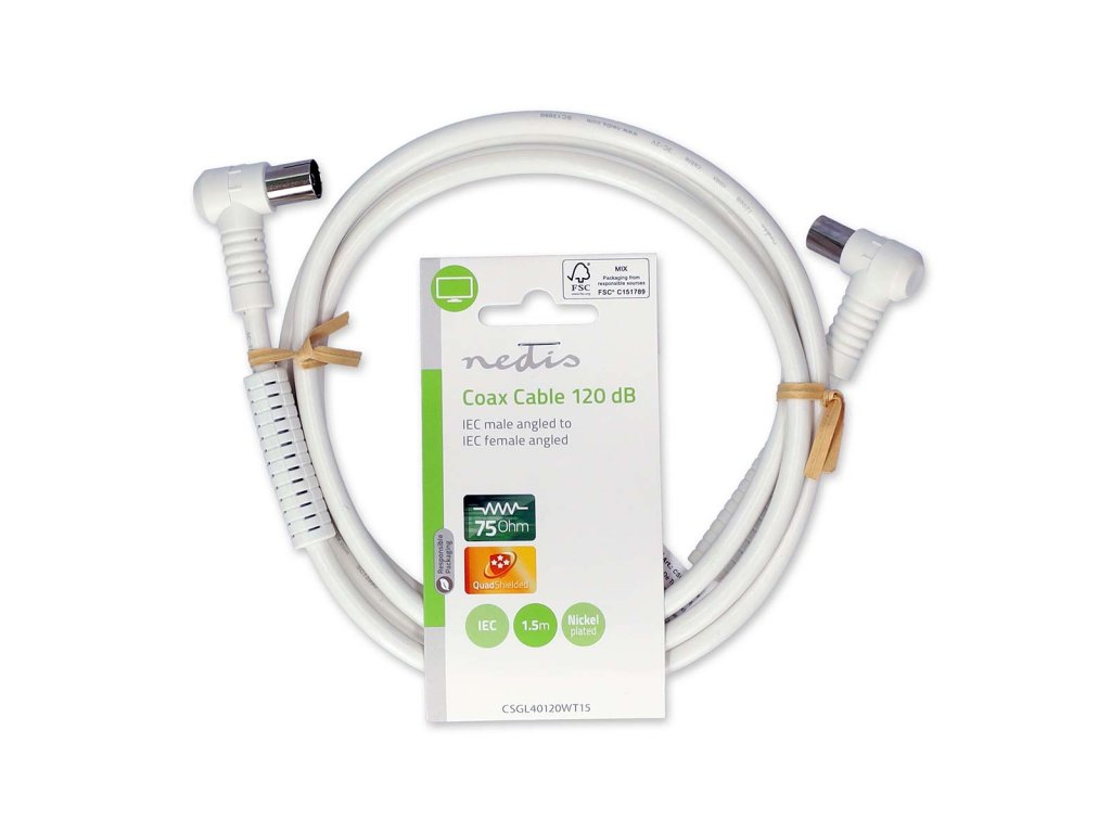 Koaxiální Kabel | IEC (Koax) Zástrčka | IEC (Koax) Zásuvka | Poniklované | 120 dB | 75 Ohm | 4x Stíněný | 1.50 m | Kulatý | PVC | Bílá | Label
