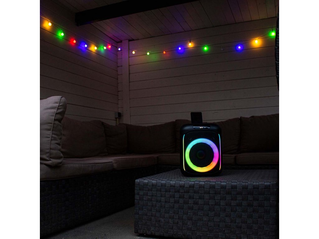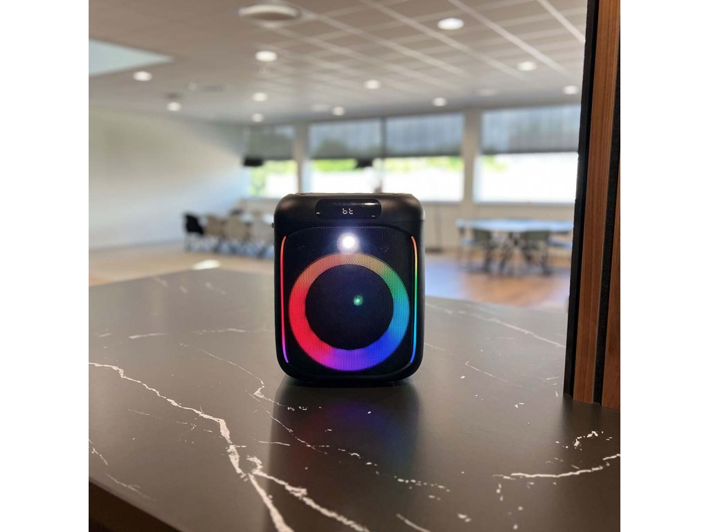S reproduktorem PA-101BK bude vaše párty skutečně kompletní! Jednoduše připojte svůj chytrý telefon nebo tablet přes Bluetooth® a přehrávejte hudbu přímo z oblíbených aplikací. Světla LED umístěná na přední straně promění každou místnost v živou diskotéku, zatímco vestavěná 2400mAh dobíjecí baterie nabízí hodiny poslechu. Se zapnutými světly si můžete užívat až 8 hodin nepřetržitého poslechu hudby a bez světel můžete tuto dobu prodloužit až na 14 hodin. Udělejte z večírku nezapomenutelný zážitek díky přiloženému bezdrátovému mikrofonu a vyzvěte všechny, aby si zazpívali s vámi!