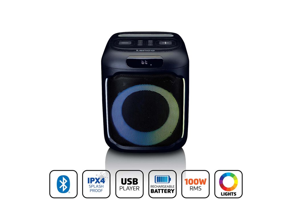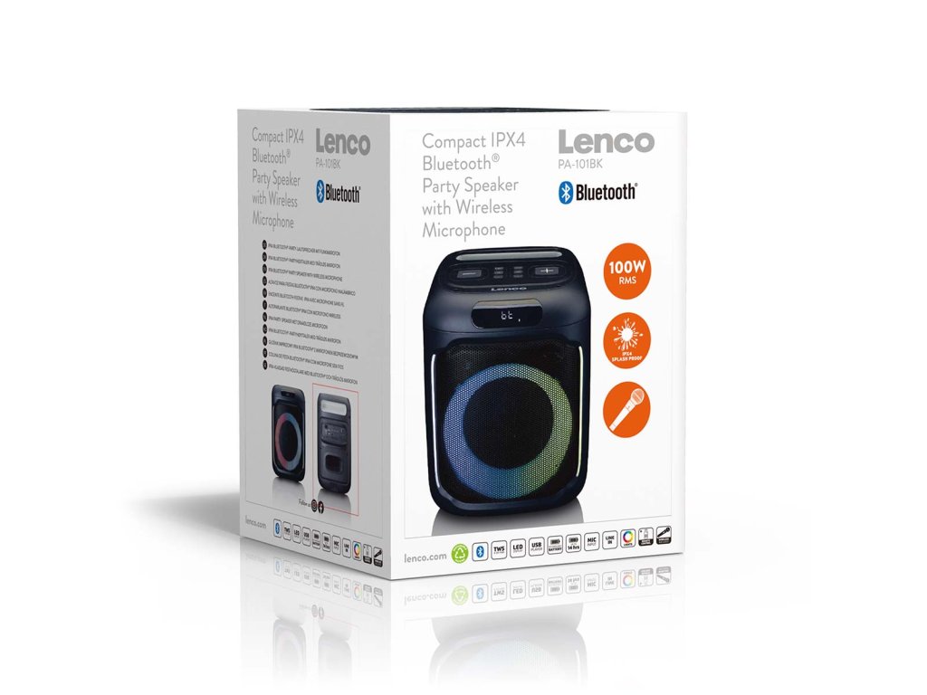 Lenco PA-101BK je přenosný párty reproduktor Bluetooth® s dlouhou výdrží baterie, který je navržen tak, aby oživil vaši párty barevnými, přizpůsobitelnými světelnými efekty LED. Výkonný zesilovač třídy D s režimem X-drive poskytuje impozantní výkon 100 W RMS, takže vaše hudba bude vždy středem pozornosti. Díky 6,5" wooferu a 1" tweeteru si můžete vychutnat hluboké basy a ostré vysoké tóny pro dokonale vyvážený zvuk. Díky výdrži baterie až 14 hodin a voděodolnému krytu IPX4 je tento reproduktor připraven na jakoukoli akci, ať už v interiéru nebo exteriéru. Reproduktor PA-101BK se navíc dodává s bezdrátovým mikrofonem a dálkovým ovládáním, díky čemuž budete mít večírek plně pod kontrolou a každý okamžik bude nezapomenutelný.