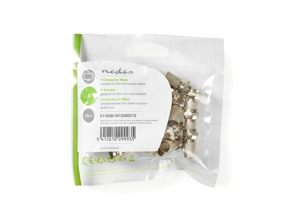 Konektor F | Samec | Pro 7,5mm Koaxiální Kabely | 25 ks | Kov