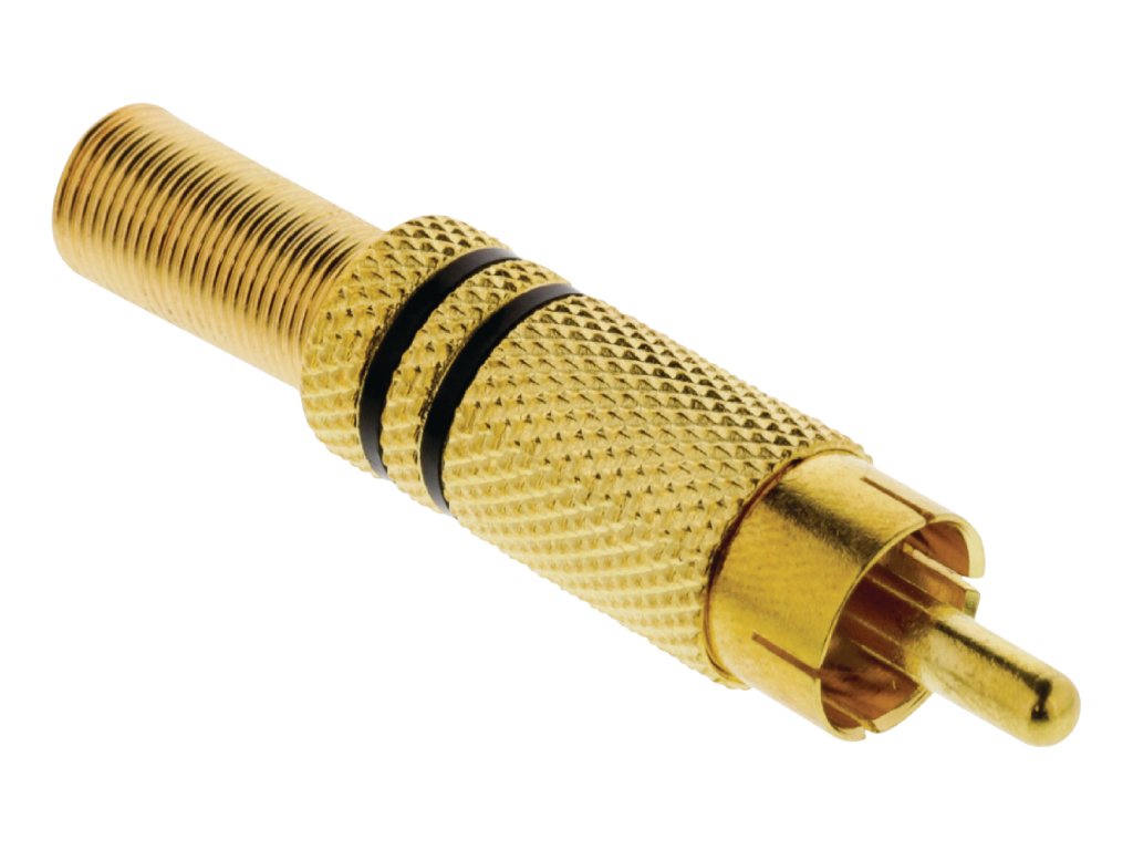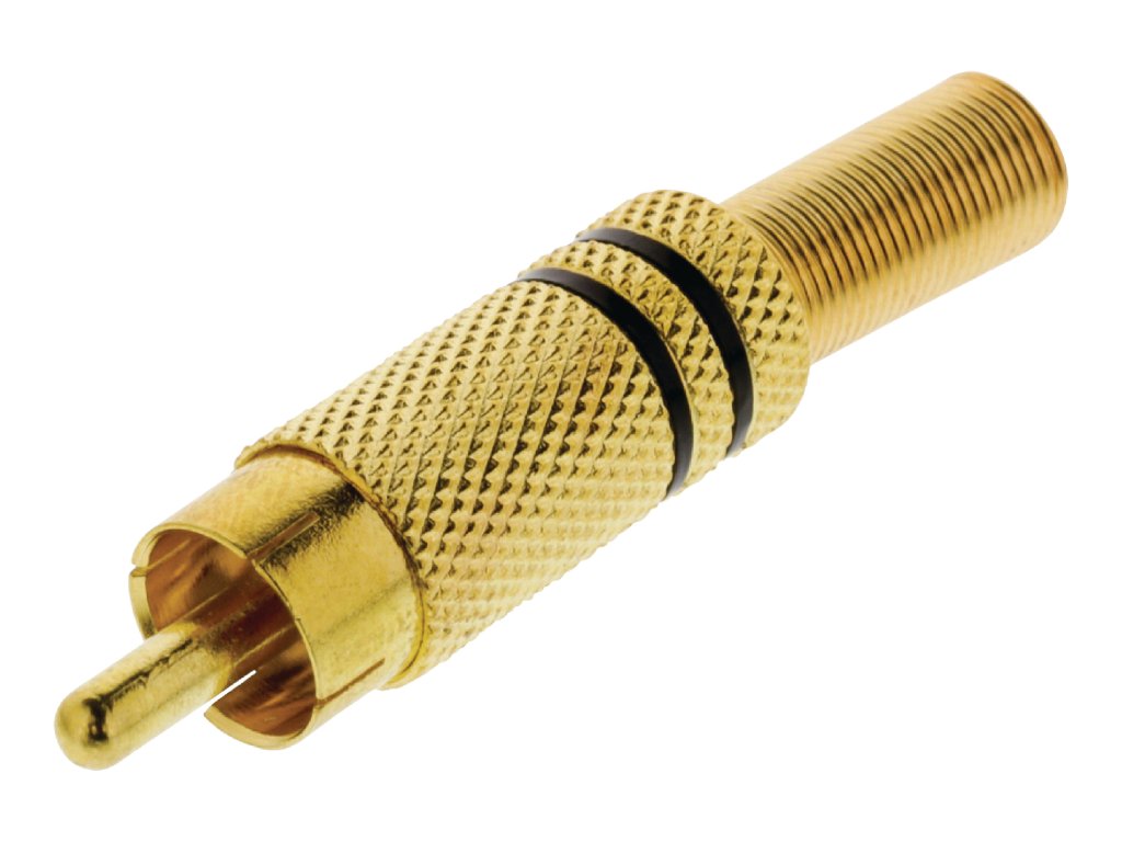 Namontujte tento konektor na audio kabel a vytvořte si vlastní audio kabel. Konektor je označen barevným kroužkem, který určuje, zda jde o levý nebo pravý audio kanál.