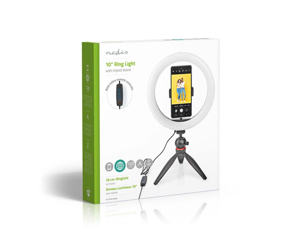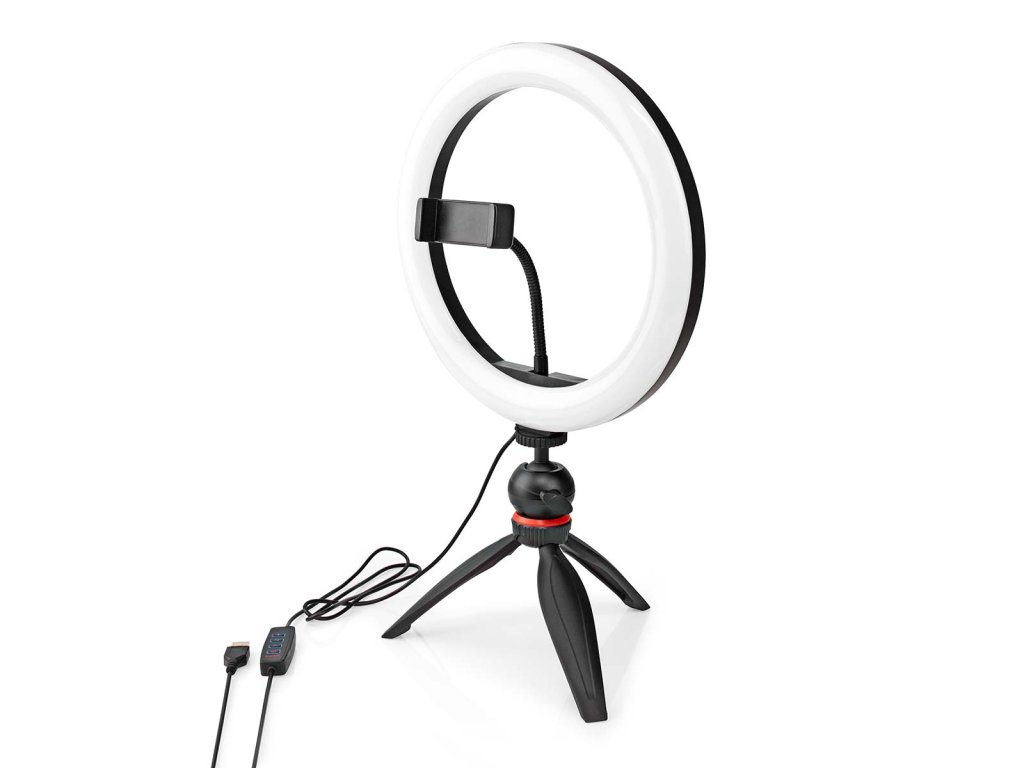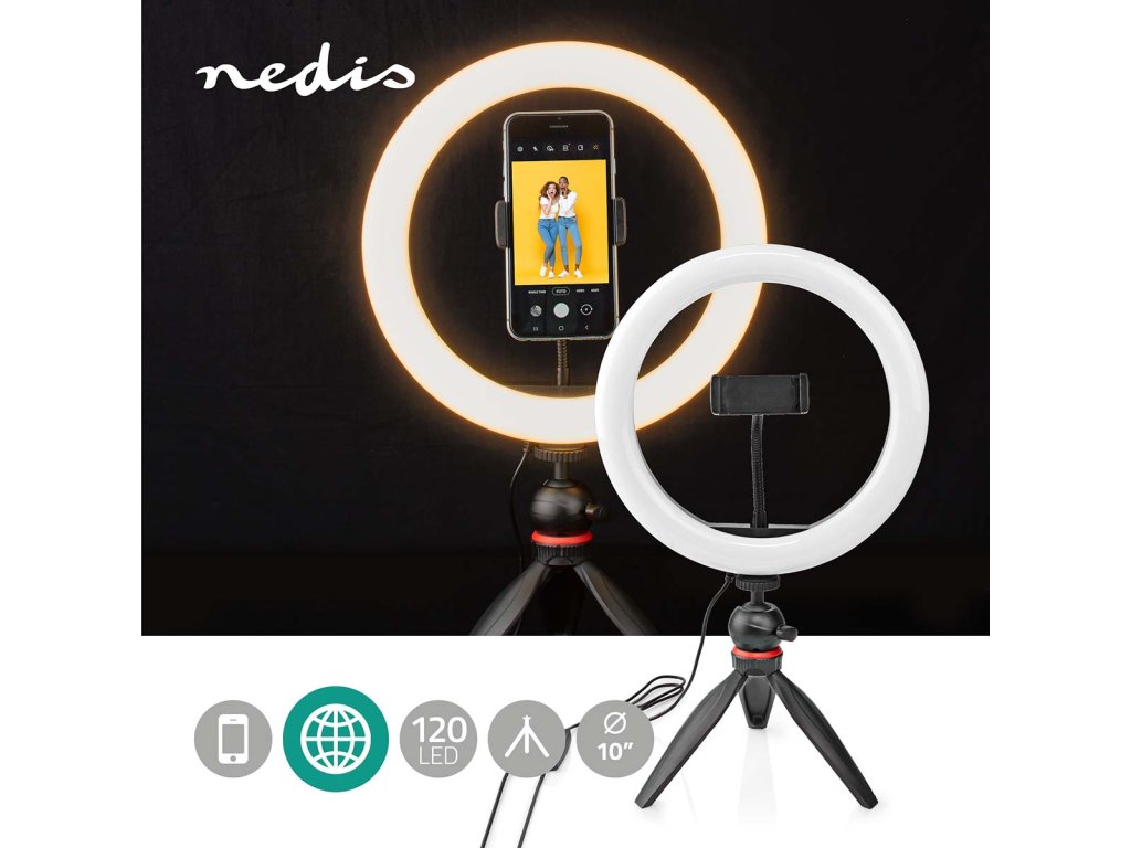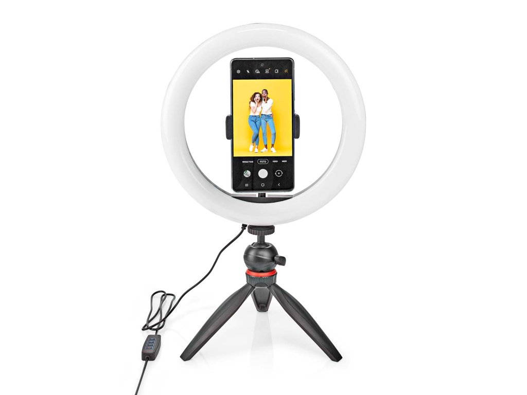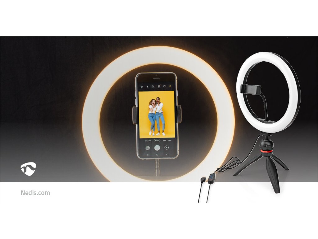 S tímto Nedis prstencovým osvětlením na tříramenném stojanu si můžete kdykoli vytvořit to nejlepší osvětlení pro svá selfie, vlogy, tutorialy, příspěvky na TikToku, Instagramu nebo videa na You Tube. 10" prstencové osvětlení se 120 LED diodami zajistí ten nejlepší efekt s rovnoměrně rozloženým světlem, ve kterém budete vždy vypadat dokonale. Stačí toto světlo položit na stůl, připojit smartphone a můžete začít natáčet. Prstencové světlo se snadno používá. Připojíte telefon na ohebný držák uprostřed prstencového osvětlení. Podle potřeby držák ohněte, abyste vždy udělali skvělou fotku z toho nejlepšího úhlu. Natočte ho proti sobě nebo od sebe nebo ho nakloňte do určitého úhlu. Vyberte si sami pomocí kabelového dálkového z 10 různých režimů osvětlení ovládání ten, který vám nejvíce vyhovuje. Díky tomu vždycky docílíte u svých videí požadovaného efektu. Prstencové osvětlení má napájení prostřednictvím USB, takže jej lze nabíjet přes počítač, powerbanku nebo pomocí napájecího adaptéru USB.