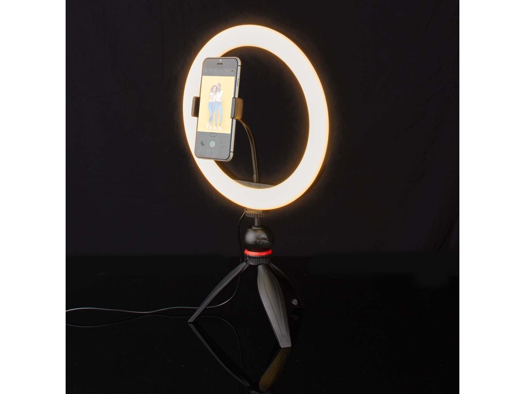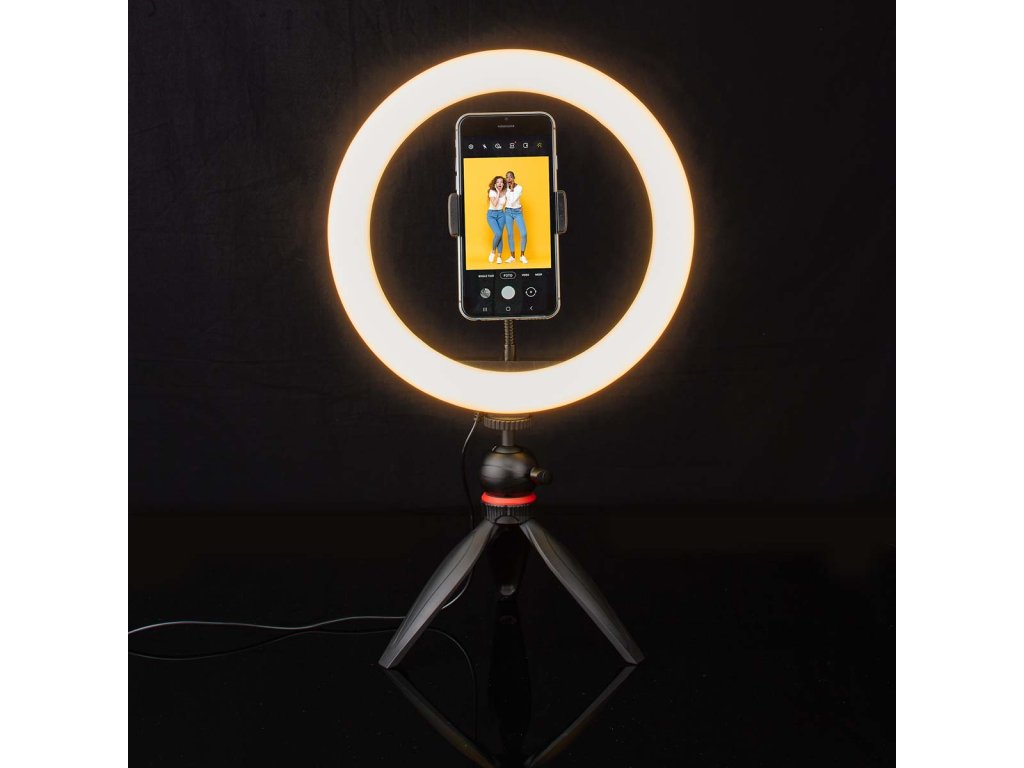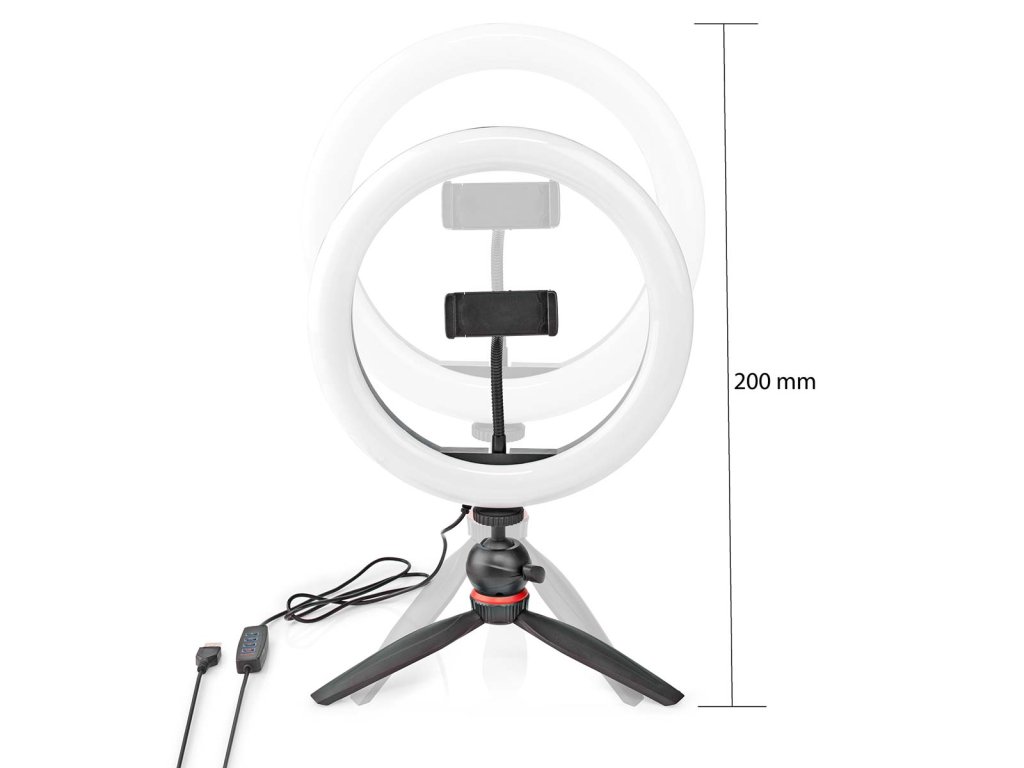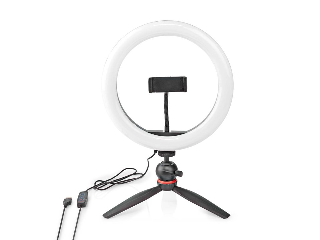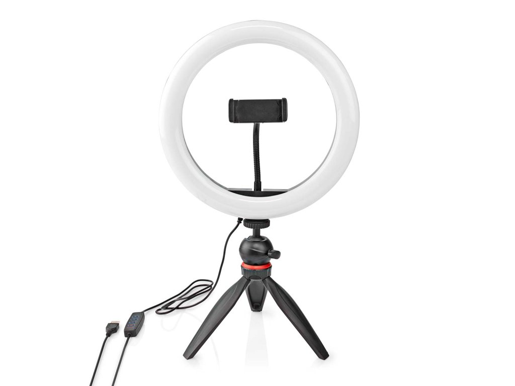 S tímto Nedis prstencovým osvětlením na tříramenném stojanu si můžete kdykoli vytvořit to nejlepší osvětlení pro svá selfie, vlogy, tutorialy, příspěvky na TikToku, Instagramu nebo videa na You Tube. 10" prstencové osvětlení se 120 LED diodami zajistí ten nejlepší efekt s rovnoměrně rozloženým světlem, ve kterém budete vždy vypadat dokonale. Stačí toto světlo položit na stůl, připojit smartphone a můžete začít natáčet. Prstencové světlo se snadno používá. Připojíte telefon na ohebný držák uprostřed prstencového osvětlení. Podle potřeby držák ohněte, abyste vždy udělali skvělou fotku z toho nejlepšího úhlu. Natočte ho proti sobě nebo od sebe nebo ho nakloňte do určitého úhlu. Vyberte si sami pomocí kabelového dálkového z 10 různých režimů osvětlení ovládání ten, který vám nejvíce vyhovuje. Díky tomu vždycky docílíte u svých videí požadovaného efektu. Prstencové osvětlení má napájení prostřednictvím USB, takže jej lze nabíjet přes počítač, powerbanku nebo pomocí napájecího adaptéru USB.