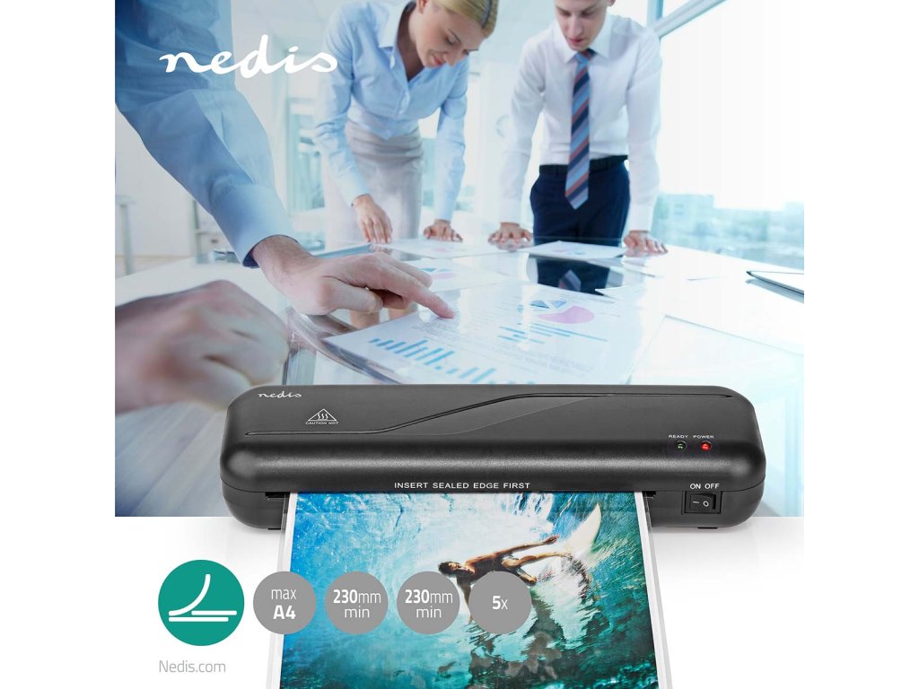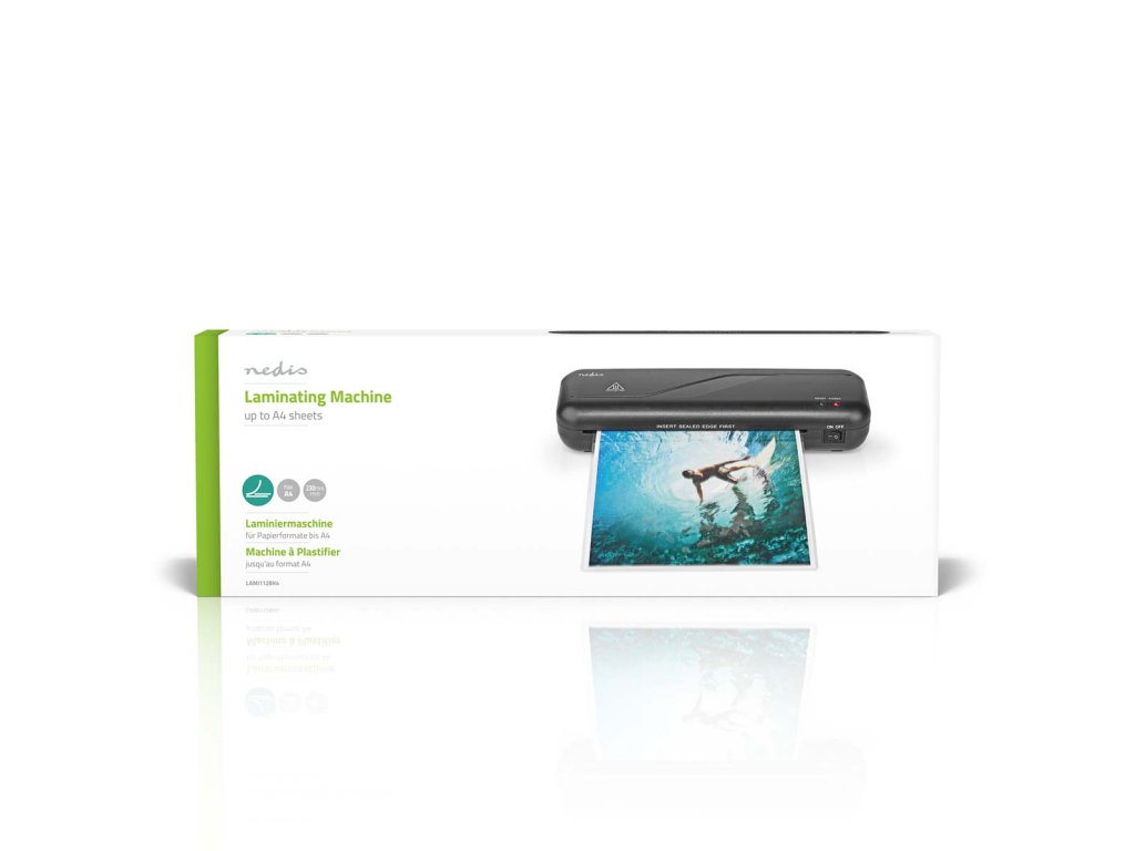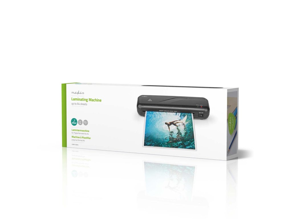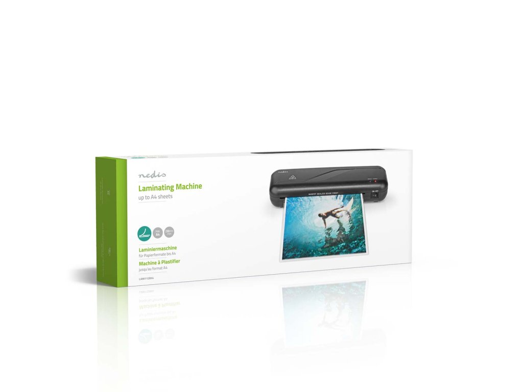 Tento Laminátor vhodný pro domácnost nebo malé kanceláře rychle a efektivně laminuje malé plakáty, poznámky, ID karty, vizitky, jídelní lístky nebo cokoliv na papíru do velikosti A4. Zahřátí stroje a jeho příprava na provoz trvá jen tři až pět minut, zařízení laminuje rychlostí 230 mm za minutu a aplikuje ochrannou vrstvu na kartón a papír. Toto tenké a kompaktní zařízení vhodné pro laminaci za tepla se automaticky vypne, aby předešlo přehřátí, a dokáže laminovat papír a kartón až do tloušťky 0,6 mm.