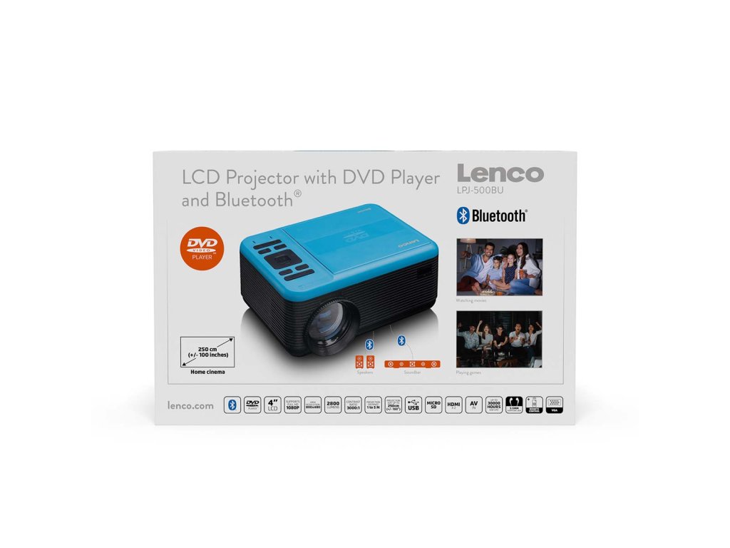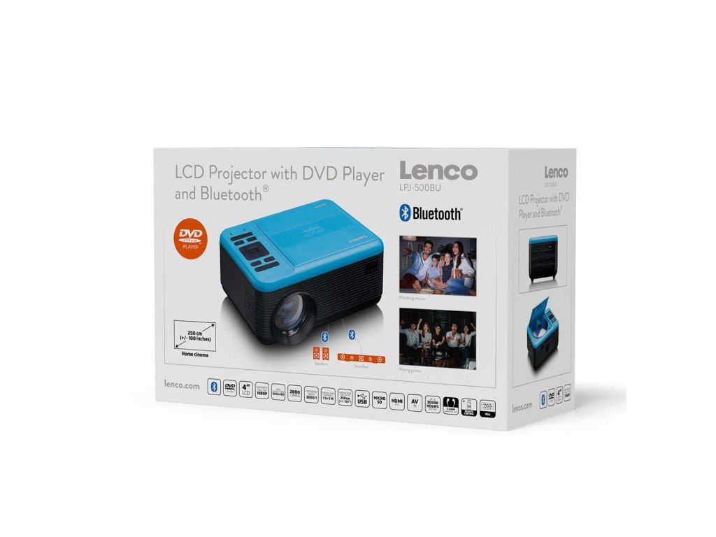 Uspořádejte ty nejlepší filmové večery s rodinou a přáteli s Lenco LPJ-500BU. Pomocí tohoto projektoru můžete přehrávat fantastická domácí videa nebo promítat nejlepší firemní prezentace. Tento projektor je kompaktní, a proto jej lze snadno vzít na všechny druhy aktivit. Všechny ohromíte obrazem v HD kvalitě a skvělými zvukovými funkcemi Bluetooth®. Kromě toho má toto zařízení velké množství možností připojení pro nejrůznější periferie, například chytrý telefon, SD kartu, paměťovou kartu, HDMI, USB a mnoho dalších. Čtete správně, LCD projektor Lenco LPJ-500 s DVD přehrávačem a funkcí Bluetooth® je naprosto dokonalým zařízením a nezbytným vybavením domácnosti, pokud chcete ze všech svých video a audio materiálů dostat to nejlepší. Je v projektoru Lenco LPJ-500 zabudovaný DVD přehrávač? Ano, v projektoru Lenco LPJ-500 je zabudován přehrávač DVD, takže nemusíte nutně připojovat další zařízení, abyste si mohli vychutnat skvělý obrazový a zvukový zážitek. Toto zařízení můžete začít používat ihned. Jakým přenosem zvuku Bluetooth® tento LCD projektor disponuje? Tento LCD projektor má přenos zvuku Bluetooth® 5.0, takže k tomuto zařízení můžete připojit jak běžné reproduktory Bluetooth®, tak výkonný soundbar Bluetooth®, a vychutnat si tak ještě lepší zážitek ze sledování a poslechu. Proměňte svůj obývací pokoj ve skutečné živé kino s projektorem Lenco LPJ-500. Jakou projekční vzdálenost má tento projektor? Tento projektor má projekční vzdálenost 1 až 5 metrů, abyste získali co nejoptimálnější obraz. Kromě toho je projekční velikost tohoto zařízení 250 cm. Jak dlouho vydrží LED lampa tohoto projektoru? LED lampa tohoto projektoru vydrží ne méně než 30 000 hodin, což je více než dost pro téměř nekonečné potěšení ze sledování.