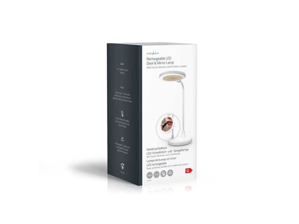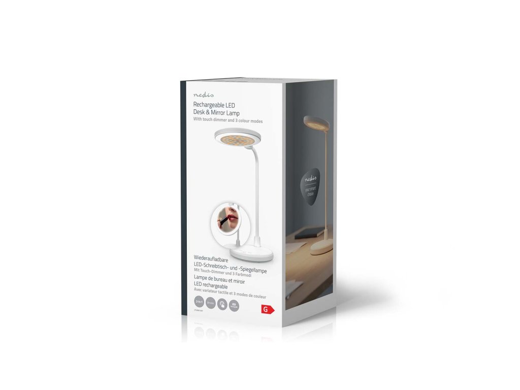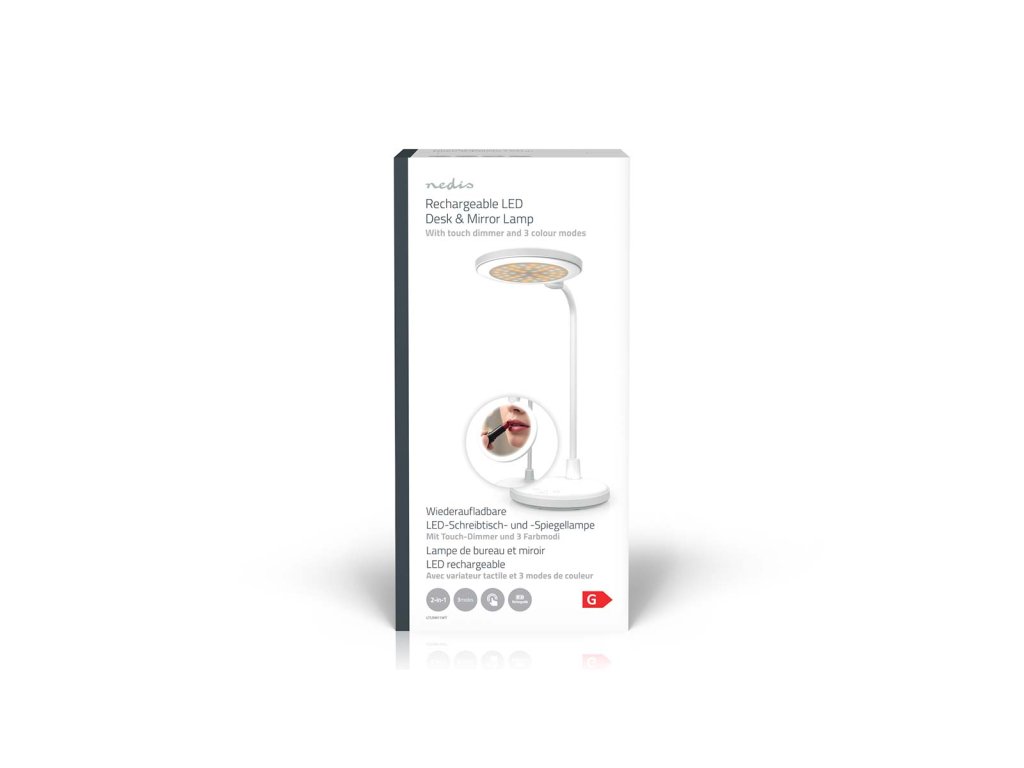LED Stolní lampa | Stmívatelné | Integrované zrcadlo | 3 Režimy Světla | 100 lm | Dobíjecí | Dotykové funkce | Bílá