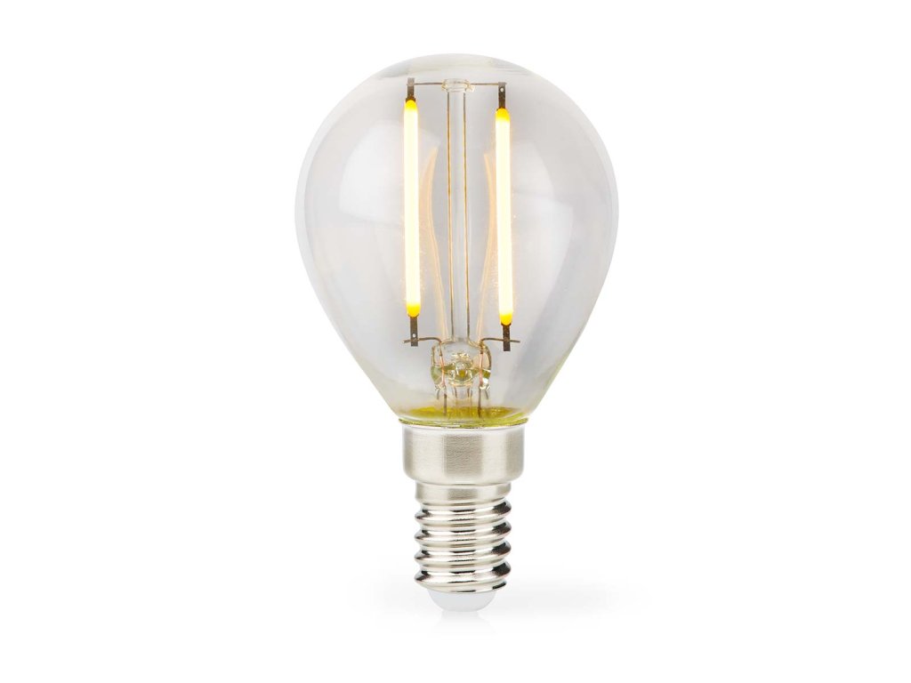 LED žárovka s vláknem ve tvaru G45 s paticí E14, světelným tokem 250 lm a nízkou spotřebou energie 2 W nahrazuje tradiční 26 W žárovku. Tato energeticky úsporná LED žárovka vyzařuje teplé bílé světlo o barevné teplotě 2 700 K