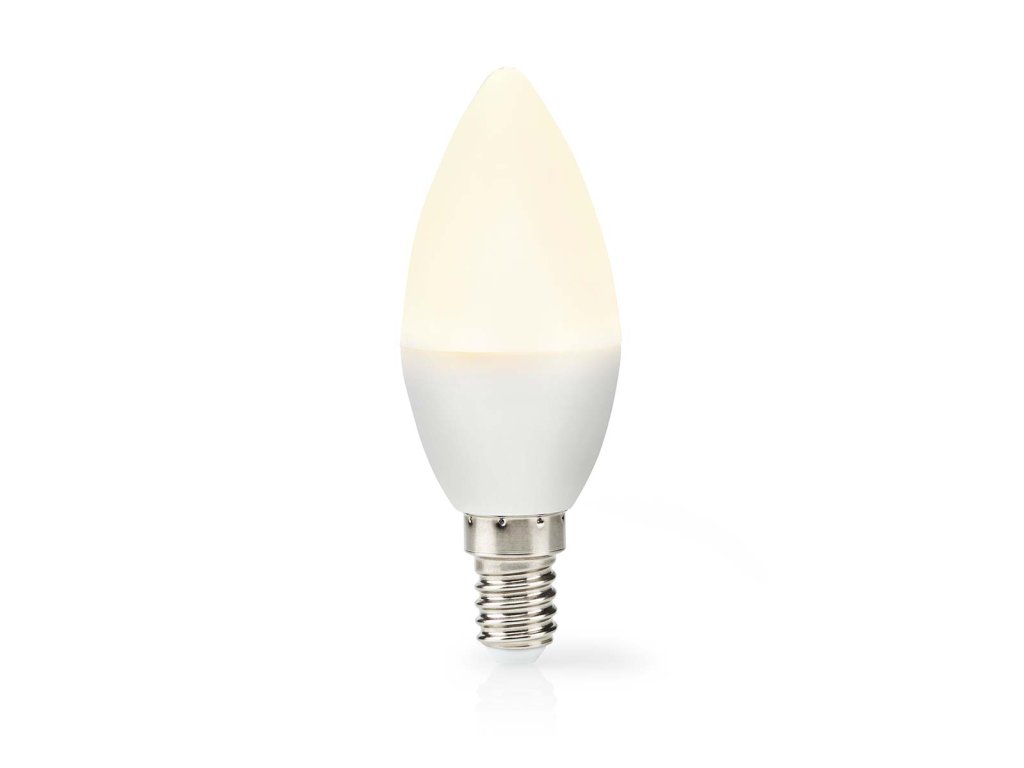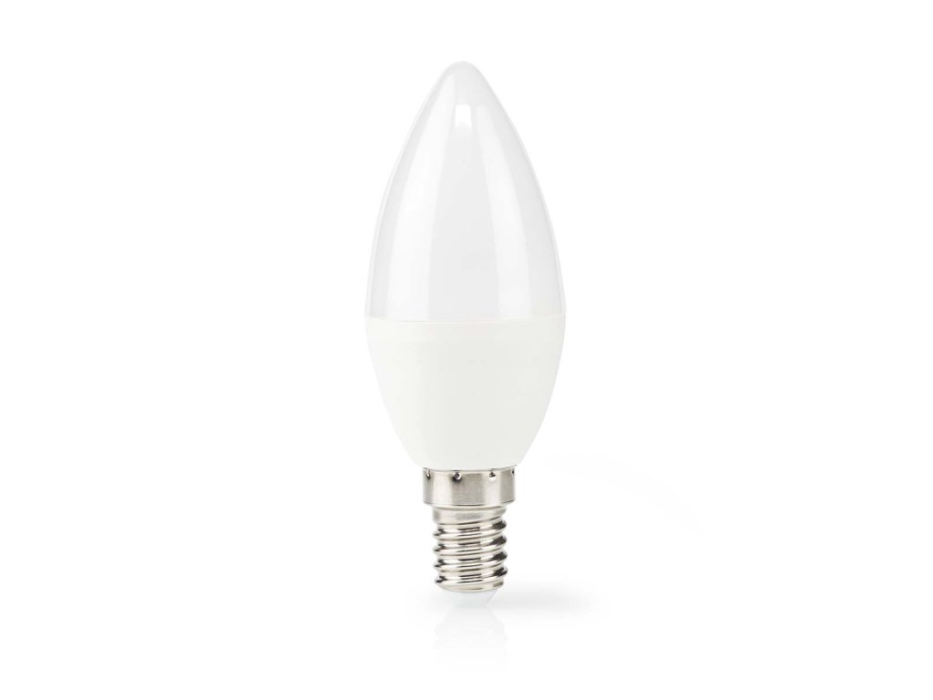 Candle shaped LED BULB with E14 cap with 470 lumen and a low power consumption of 4,9W to replace a traditional 42W incandescent lamp. This energy efficient LED bulb spreads a warm white light with a colour temperature of 2700 Kelvin