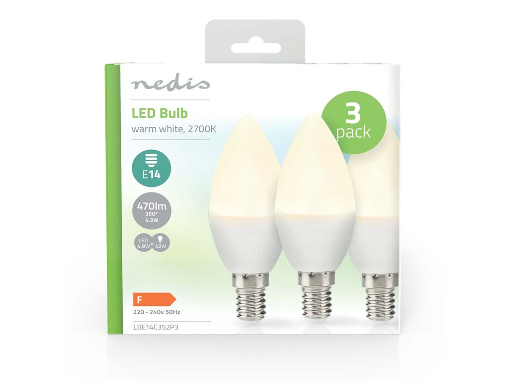 LED žárovka E14 | Svíčka | 4.9 W | 470 lm | 2700 K | Teplá Bílá | Matné | 3 kusů