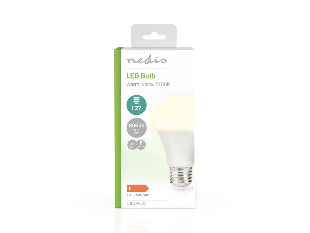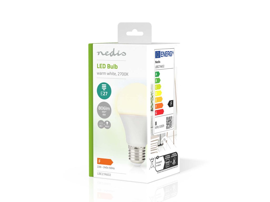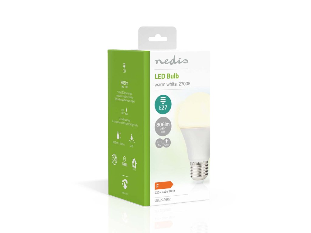LED žárovka ve tvaru A60 s paticí E27, světelným tokem 806 lm a nízkou spotřebou energie 8,5 W nahrazuje tradiční 64 W žárovku. Tato energeticky úsporná LED žárovka vyzařuje teplé bílé světlo o barevné teplotě 2 700 K