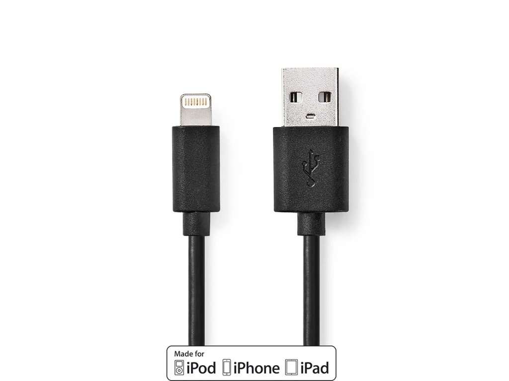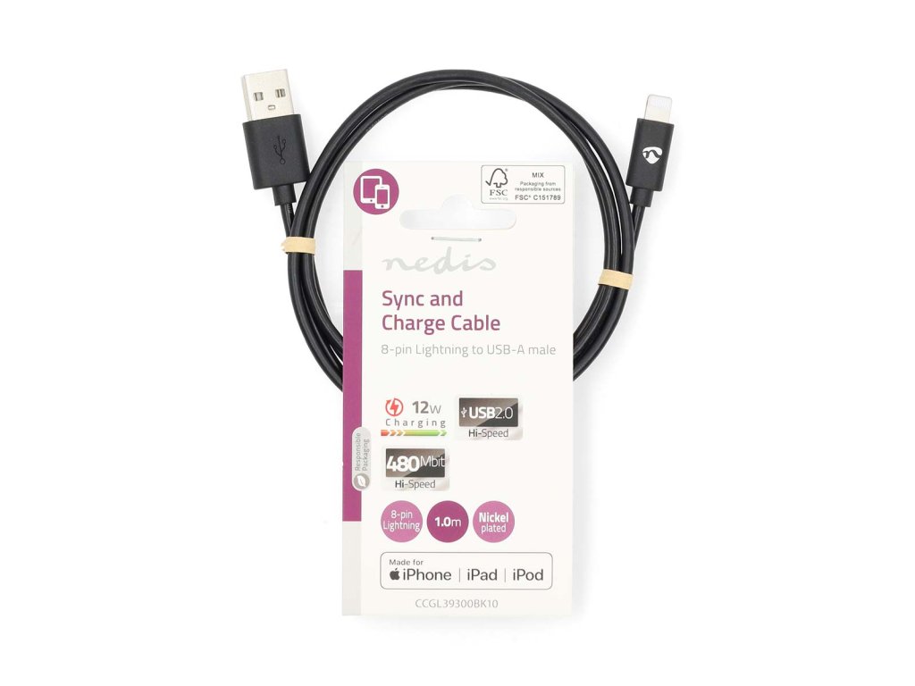 Lightning Kabel | USB 2.0 | Apple Lightning 8pinový | USB-A Zástrčka | 480 Mbps | Poniklované | 1.00 m | Kulatý | PVC | Černá | Label