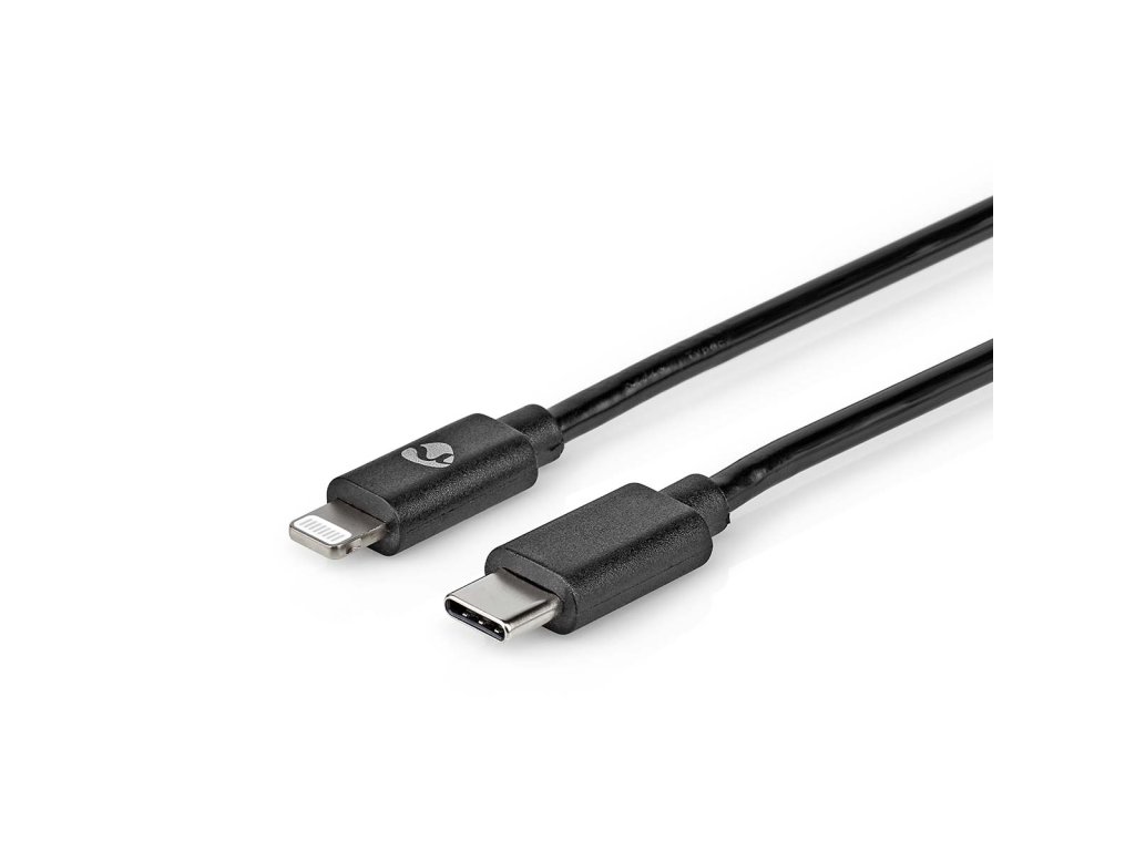 Lightning Kabel | USB 2.0 | Apple Lightning 8pinový | USB-C™ Zástrčka | 480 Mbps | Poniklované | 2.00 m | Kulatý | PVC | Černá | Obálka
