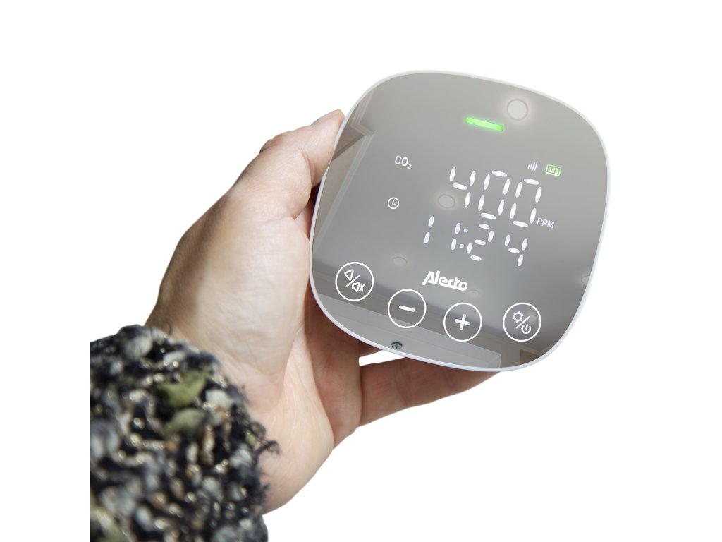 Měřič CO2 Alecto AQ30 je profesionální měřič kvality vzduchu, který měří koncentraci oxidu uhličitého (CO2) ve vzduchu. Obsah CO2 je dobrým ukazatelem kvality vzduchu v domě a měřítkem dobrého větrání v místnostech, kde jsou přítomny osoby. Dobrá kvalita vzduchu je důležitá pro naše zdraví a pohodu. Tento měřič CO2 vám poskytne přehled o kvalitě vzduchu a vy budete vědět, kdy byste měli jednat. Je ideální pro monitorování a vytváření zdravého vzduchu v interiéru doma, ve škole nebo v práci.