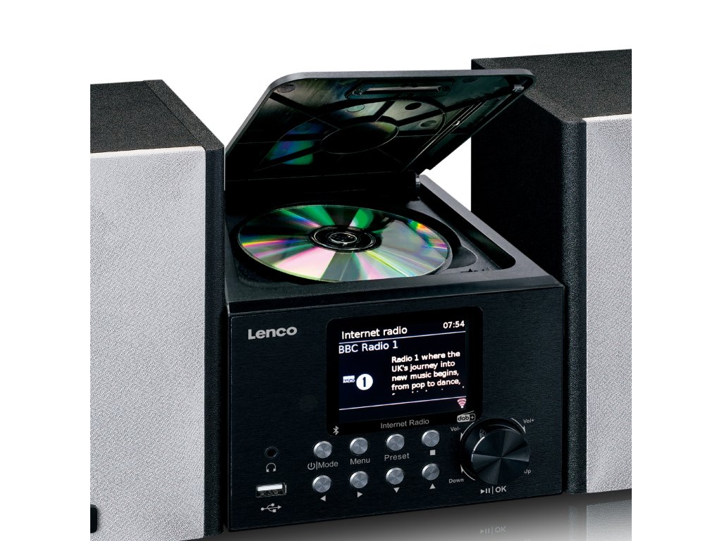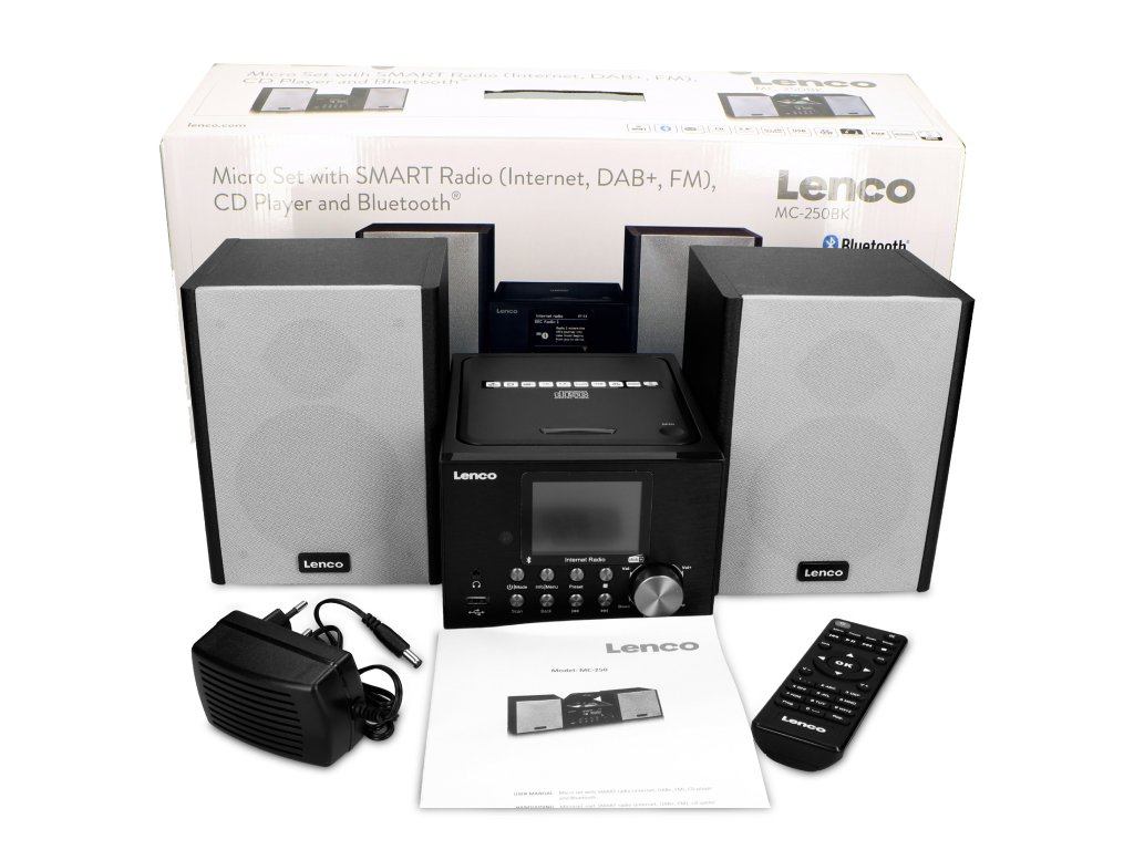Lenco MC-250 je stereofonní souprava s 2,8palcovým barevným displejem, rádiem Smart, internetem, rádiem DAB+/FM, Bluetooth® a přehrávačem CD/MP3/USB. Hodí se do každého obývacího pokoje, objevte s přáteli sílu reproduktorů o výkonu 2x 12 W nebo připojte sluchátka a poslouchejte nerušeně svou oblíbenou skladbu opakovaně. S reproduktorem Lenco MC-250 si můžete pouštět hudbu po celý den, jak se vám zachce. Snadné používání ještě zpříjemní dodávané dálkové ovládání. Připojte svůj chytrý telefon nebo tablet ke stereofonní soupravě prostřednictvím rozhraní Bluetooth®, a tak můžete snadno streamovat hudbu ze všech svých oblíbených aplikací. Díky funkci DAB+ můžete přijímat všechny své oblíbené rozhlasové stanice v digitální zvukové kvalitě. Vysílače můžete snadno přepínat pomocí snadno použitelných ovládacích tlačítek na přední straně nebo použít přehrávač CD a přehrávat svá oblíbená alba.