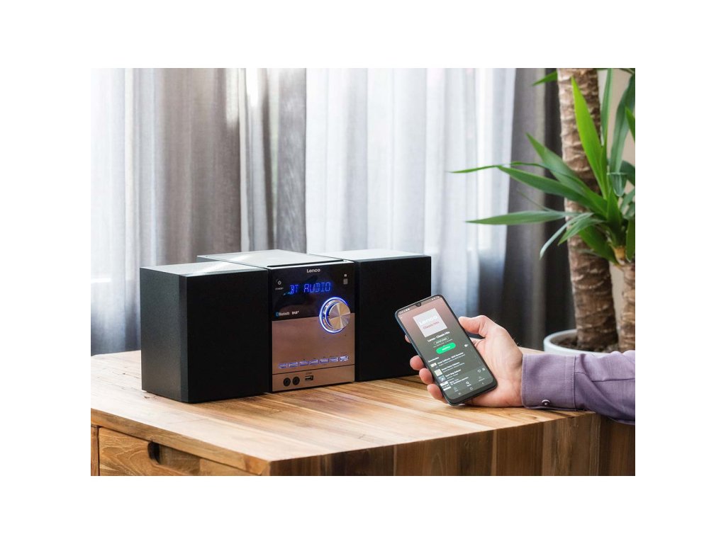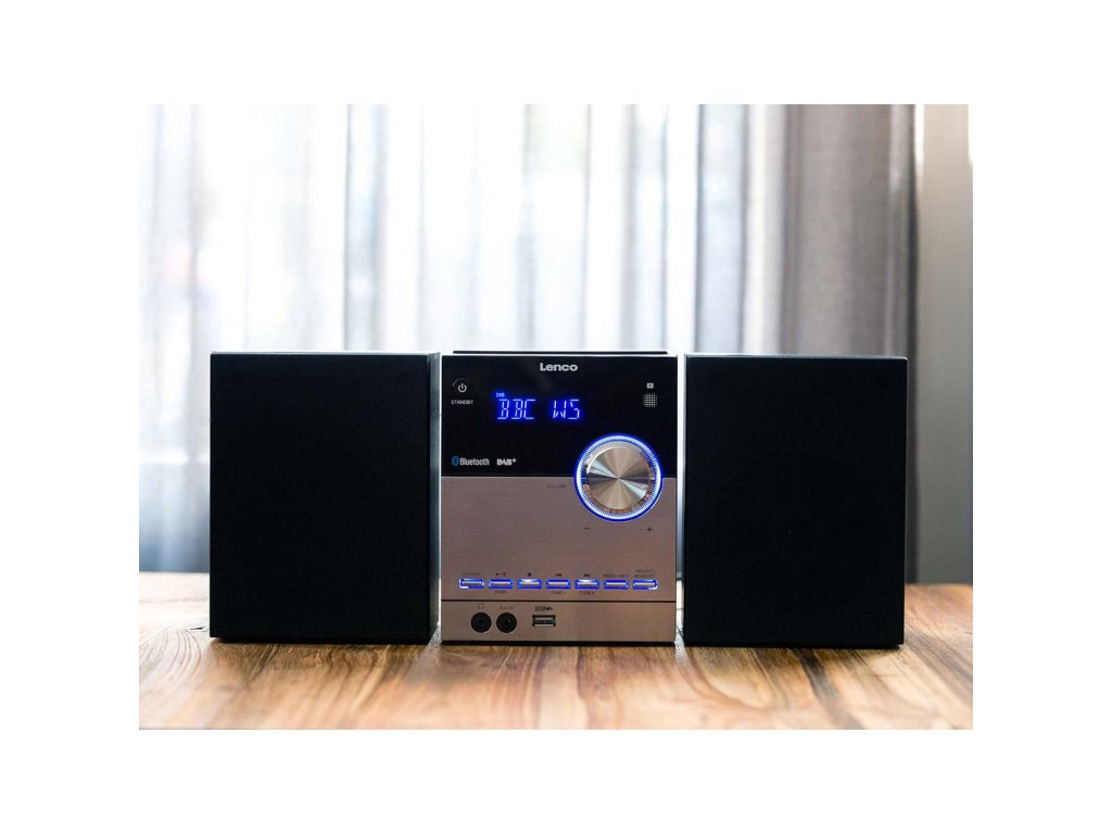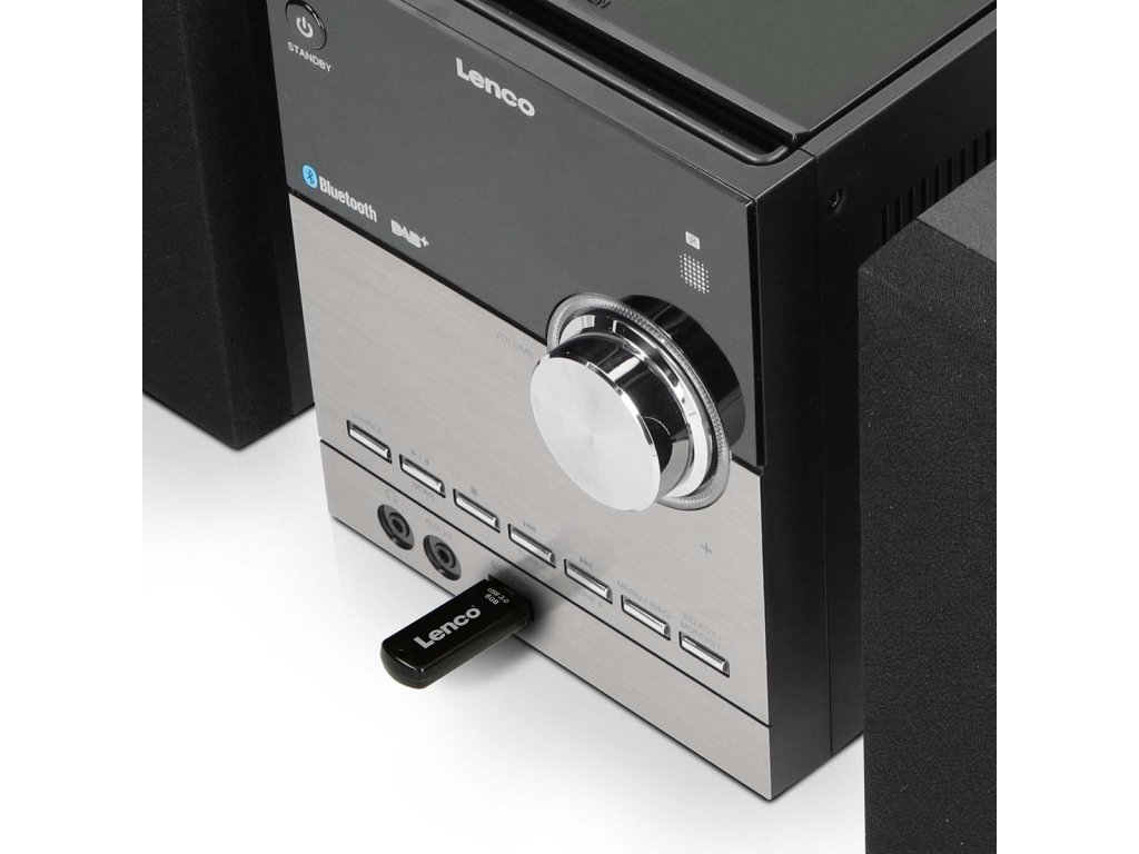 Lenco MC-150 je stereofonní souprava s rádiem DAB+FM, Bluetooth® a přehrávačem CD/USB vhodná do každého obývacího pokoje. Objevte sílu reproduktorů a poslouchejte hudbu se svými přáteli nebo zapojte sluchátka a poslouchejte svou oblíbenou skladbu opakovaně bez jakéhokoli rušení. S reproduktorem Lenco MC-150 si můžete pouštět hudbu po celý den, ať jste kdekoli. Připojte svůj chytrý telefon nebo tablet ke stereofonní soupravě prostřednictvím rozhraní Bluetooth®, můžete tak snadno streamovat hudbu ze všech svých oblíbených aplikací. Kromě přehrávání hudby můžete přehrávač Lenco MC-150 používat jako rádio. Funkce DAB+ vám umožní přijímat všechny vaše oblíbené rozhlasové stanice, nyní však v digitální zvukové kvalitě. Vysílač můžete snadno přepínat pomocí praktických ovládacích tlačítek na přední straně přístroje nebo použít dodávaný dálkový ovladač. Díky funkci přehrávače CD si můžete vychutnat svou oblíbenou hudbu také na přehrávači CD. Lenco MC-150 je systém "vše v jednom", který je ideální pro jakoukoli místnost ve vašem domě.