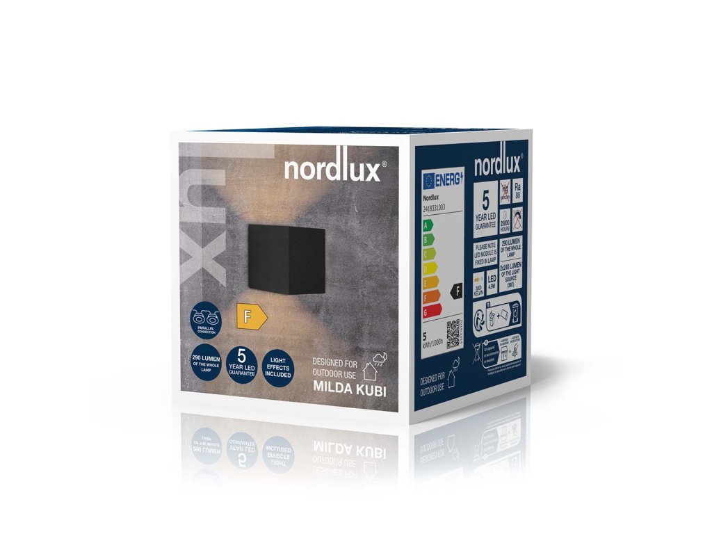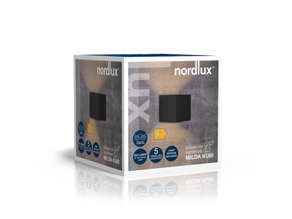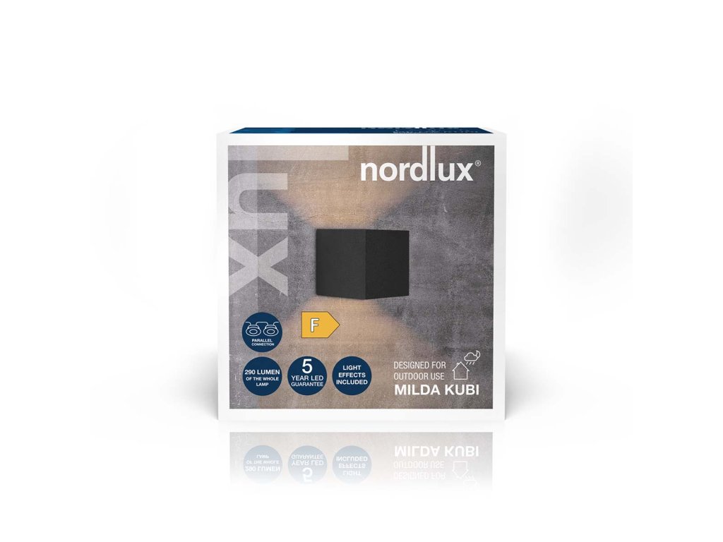 Milda Kubi má jednoduchý a minimalistický design a na stěně poskytuje zajímavý světelný efekt směrem nahoru i dolů. Pomocí vestavěných světelných masek můžete vytvořit požadovaný světelný vzor.