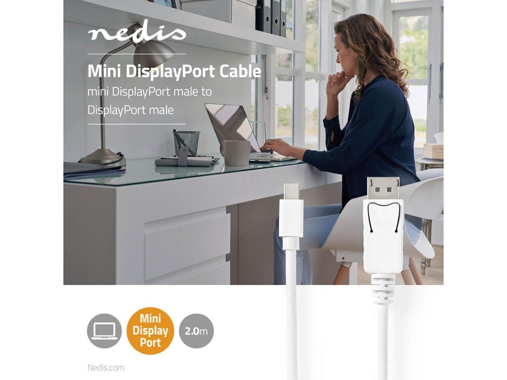 Mini DisplayPort - DisplayPort Kabel | Mini DisplayPort Zástrčka - DisplayPort Zástrčka | 2 m | Bílý