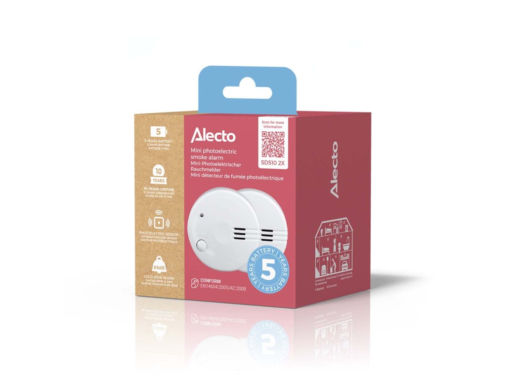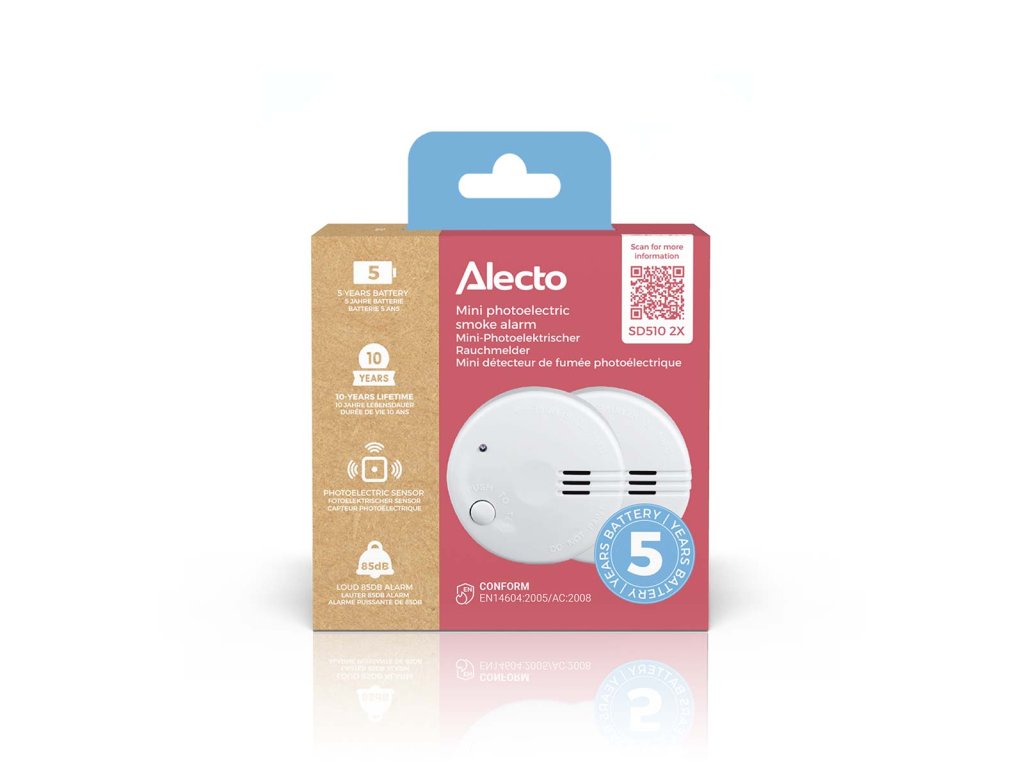 Miniaturní detektor kouře s baterií na 5 let v balení 2 kusy Bílá