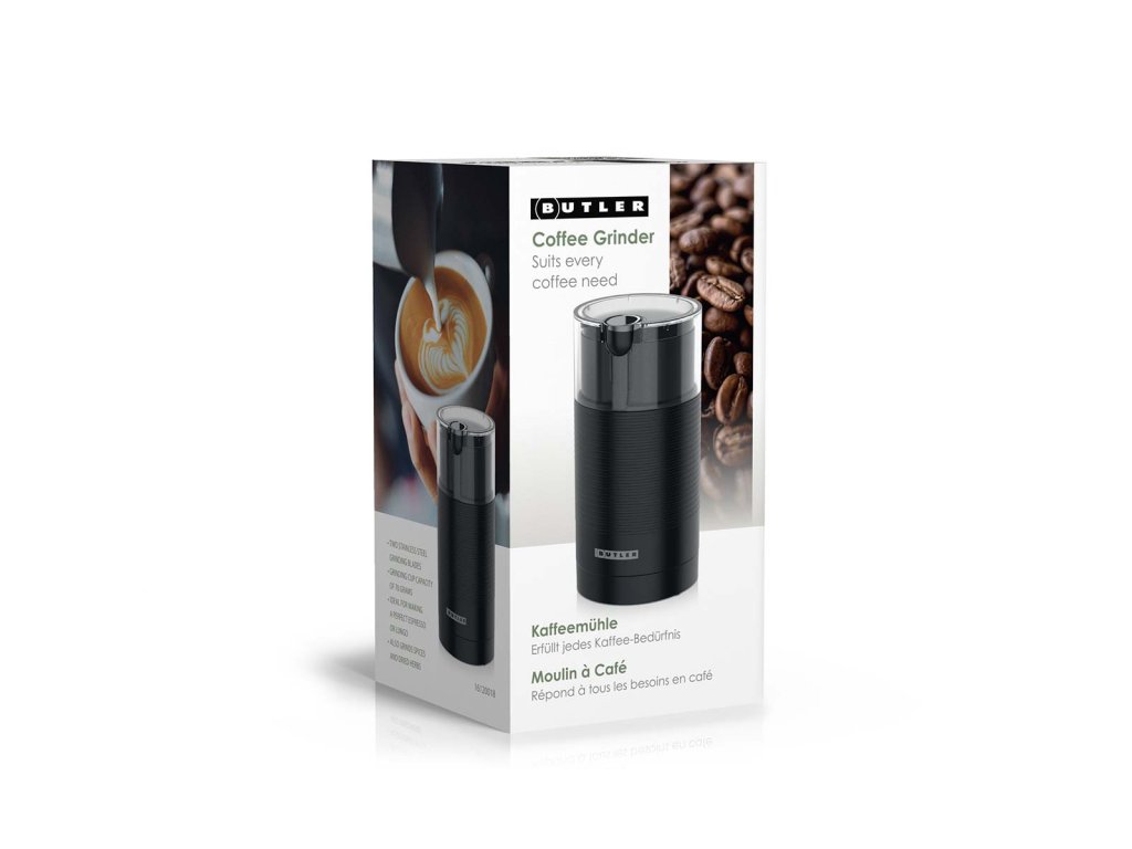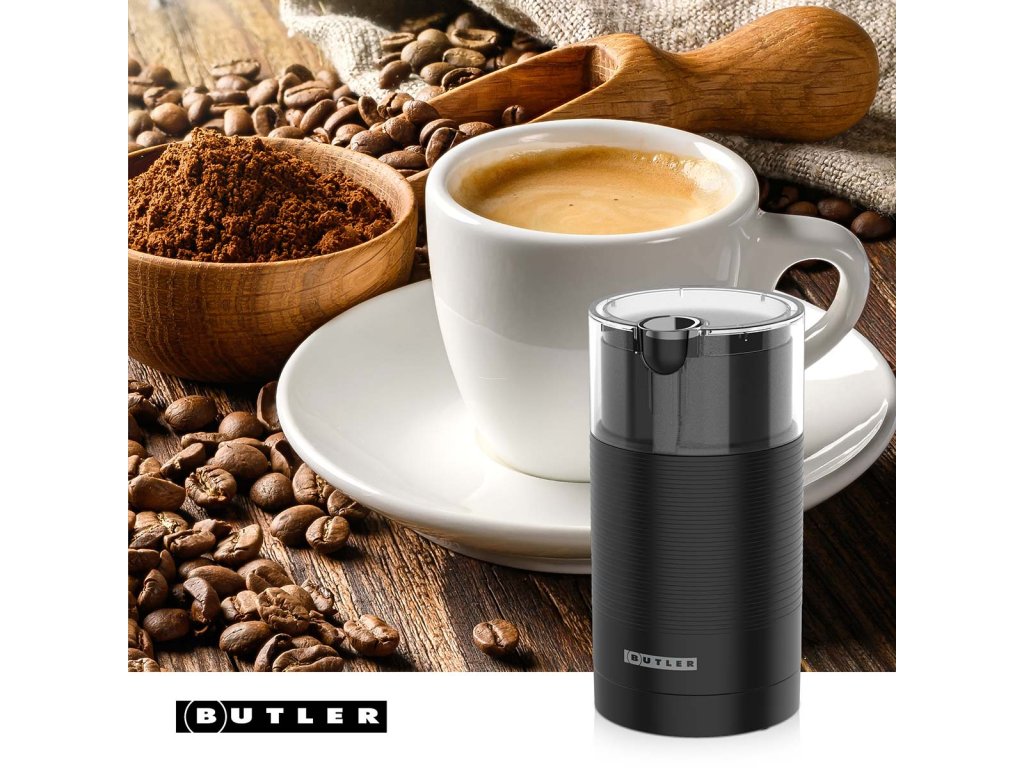 S mlýnkem na kávu Butler si každý den vychutnáte bohaté aroma a plnou chuť čerstvě namleté kávy. Tento kompaktní přístroj, navržený pro snadnou obsluhu a spolehlivý výkon, poskytuje čerstvě namletá zrnka pouhým stisknutím tlačítka - ideální pro domácí milovníky kávy, kteří ocení pohodlí bez kompromisů v chuti. Mlýnek na kávu Butler, poháněný 150wattovým motorem, nabízí rychlé a efektivní mletí a během několika sekund promění celá zrna na jemnou nebo hrubou konzistenci. Ať už vaříte silné espresso nebo jemné lungo, můžete se spolehnout na konzistentní mletí pro nejlepší možný výsledek. Mlýnek je vybaven dvěma noži z nerezové oceli, které jsou konstruovány pro dlouhou životnost a přesnost. Tyto ostré čepele pracují rychle a rovnoměrně a pomáhají zachovat přirozenou chuť a oleje vašich kávových zrn. Mlýnek má kapacitu 70 gramů, což vám umožní připravit dostatek kávy na několik porcí najednou - ideální pro rušná rána nebo hosty. Obsluha je jednoduchá: stačí přidat kávová zrna, stisknout tlačítko a nechat přístroj, aby se postaral o zbytek. Díky ovládání jedním dotykem je proces mletí bezproblémový a bezpečný, i když s domácí přípravou kávy teprve začínáte. Díky svým kompaktním rozměrům se mlýnek na kávu Butler snadno vejde na jakoukoli kuchyňskou linku nebo polici. Jeho čistý design a systém nožů z nerezové oceli usnadňují údržbu a čištění, takže si můžete bez problémů vychutnávat čerstvou kávu každý den. Ať už si připravujete ranní šálek nebo se chystáte na odpolední osvěžení, tento mlýnek je dokonalým společníkem pro vaši kávovou rutinu. Zažijte uspokojení z čerstvě namleté kávy doma - rychlé, snadné a vždy lahodné.