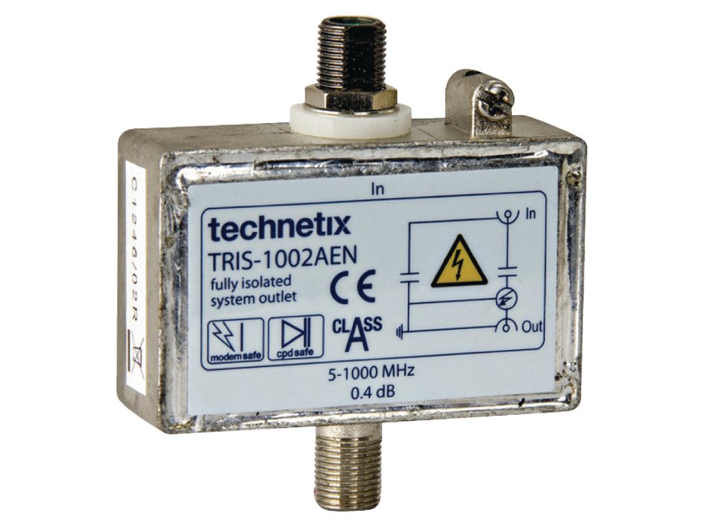 Galvanic separator uses for distinguishing different network layers from each other. The separator prevents potential differences and thereby dangerous currents. TRIS-1002/AEN separates both the inner conductor and shield apart.