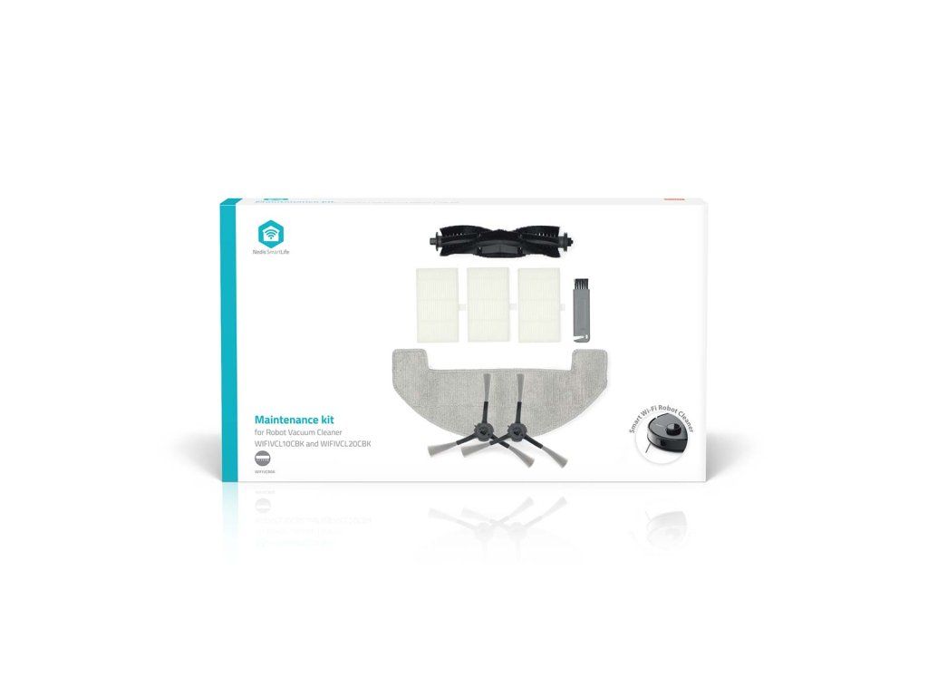 S touto Nedis sadou pro údržbu získáte všechny díly robotického vysavače WIFIVCL10CBK a WIFIVCL20CBK, které je třeba vyměnit. Pro optimalizaci výkonu a prodloužení životnosti robotického vysavače doporučujeme pravidelně vyměňovat filtry, kartáče a mop. Většinu dílů je třeba vyměnit dvakrát ročně, aby byl robotický vysavač v dobrém stavu. Tímto způsobem zajistíte, že váš úklidový pomocník bude opět plnit svou funkci. Tato sada je vhodná výhradně pro vysavače WIFIVCL10CBK a WIFIVCL20CBK a obsahuje: • 3 HEPA filtry • 1 válečkový kartáč • 2 sady bočních kartáčů • čisticí kartáč (s nožem) • 1 mop