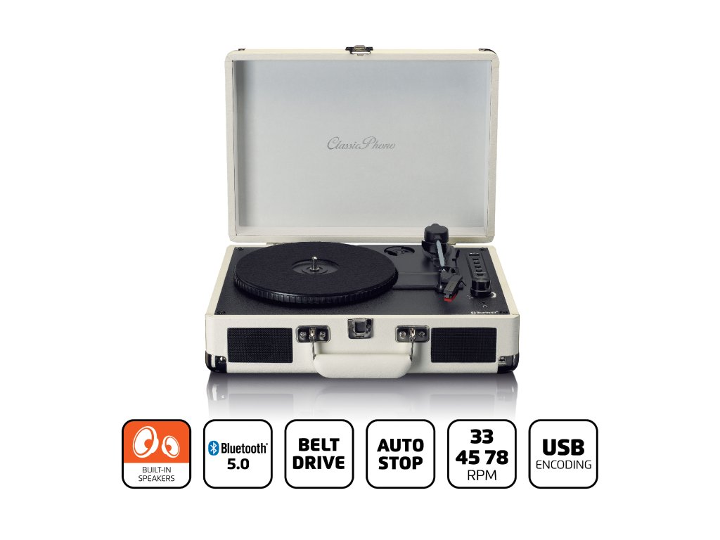 Vychutnejte si svou oblíbenou hudbu se stylovým retro gramofonem Lenco TT-115CR Bluetooth® s reproduktory. Tento praktický kufříkový retro gramofon nepřehrává jen vaše vinylové desky. Umožňuje streamovat vaše oblíbené skladby do vestavěných reproduktorů pomocí telefonu nebo tabletu. Přehrávanou hudbu je navíc možné nahrávat přímo na USB. Klíčové funkce: - Vychytávky pro přehrávání hudby z gramofonových desek: • Bluetooth® přehrávač s reproduktory • Praktický, kompaktní a přenosný kufříkový gramofon • Díky vestavěným reproduktorům si můžete hudbu vychutnat okamžitě, nejsou potřeba žádné další reproduktory • Snadné a rychlé streamování oblíbených seznamů skladeb díky připojení Bluetooth® 5.0 • Nahrávejte hudbu na paměťové zařízení USB, ať už přehráváte přes vinyl, Bluetooth® nebo připojení AUX • Díky vynikající kvalitě zvuku si vaše vinyly přijdou na své • Součástí balení je adaptér na 45 otáček za minutu a síťový adaptér s kabelem o délce 1,5 metru / 5 stop. Vše v jednom: Kufříkový přehrávač s reproduktory Lenco TT-115CR je tzv. kufříkový gramofon. Jedná se o přenosný gramofon ve tvaru kufru. Snadno se přenáší a používá. Otevřete retro kufřík a okamžitě si poslechněte svou oblíbenou hudbu na vinylu prostřednictvím integrovaných reproduktorů. Je to skutečně univerzální gramofon. Nepotřebujete žádné samostatné reproduktory. Pevné pouzdro s rukojetí zajišťuje optimální ochranu vašeho gramofonu. Přehrávání vinylů, streamování a mnoho dalšího Přehrávač Lenco TT-115CR lze používat různými způsoby. Kromě jednoduchého přehrávání oblíbených desek můžete také streamovat své seznamy skladeb prostřednictvím chytrého telefonu. Je vybaven technologií Bluetooth® 5.0, která zajišťuje rychlé připojení a bezproblémové přehrávání hudby. Gramofon s rozhraním Bluetooth® můžete také připojit k hi-fi soupravě prostřednictvím vstupu AUX-IN. Pomocí výstupu RCA lze přímo připojit stereofonní systém. Gramofonový předzesilovač není nutný. Jednoduše připojte sluchátka a vychutnejte si nádherný zvuk, tiše a nerušeně. Tento gramofon s technologií Bluetooth® je k dispozici v černé a krémové barvě. Technické specifikace : • Rychlost přehrávání 33, 45 a 78 otáček za minutu • Systém Autostop • Výstupy: RCA výstup 3,5 mm / 0,14" konektor pro sluchátka • Vstupy: Vstup AUX 3,5 mm / 0,14 palce • 2 x 2 W max. 11,5 x 35 x 28 cm / 0,5 x 1,4 x 1,1 palce • Keramická stereofonní kazeta s jehlou • Skříňka z MDF s povrchovou úpravou z umělé kůže Co je součástí balení? • Gramofon TT-115CR s Bluetooth® • Adaptér na 45 otáček za minutu • Síťový adaptér • Příručka v NL/EN/DE/FR/ES