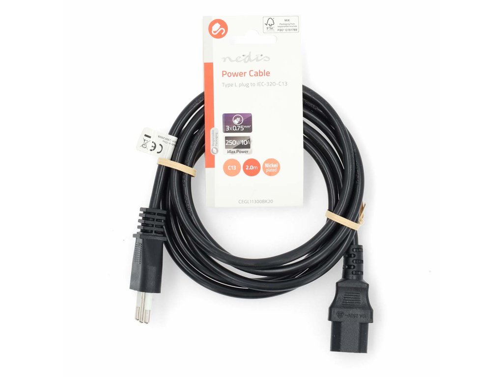 Napájecí kabel | Itálie Zástrčka | IEC-320-C13 | Přímý | Přímý | Poniklované | 2.00 m | Kulatý | PVC | Černá | Label