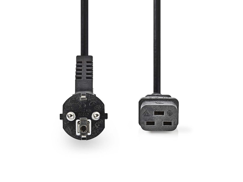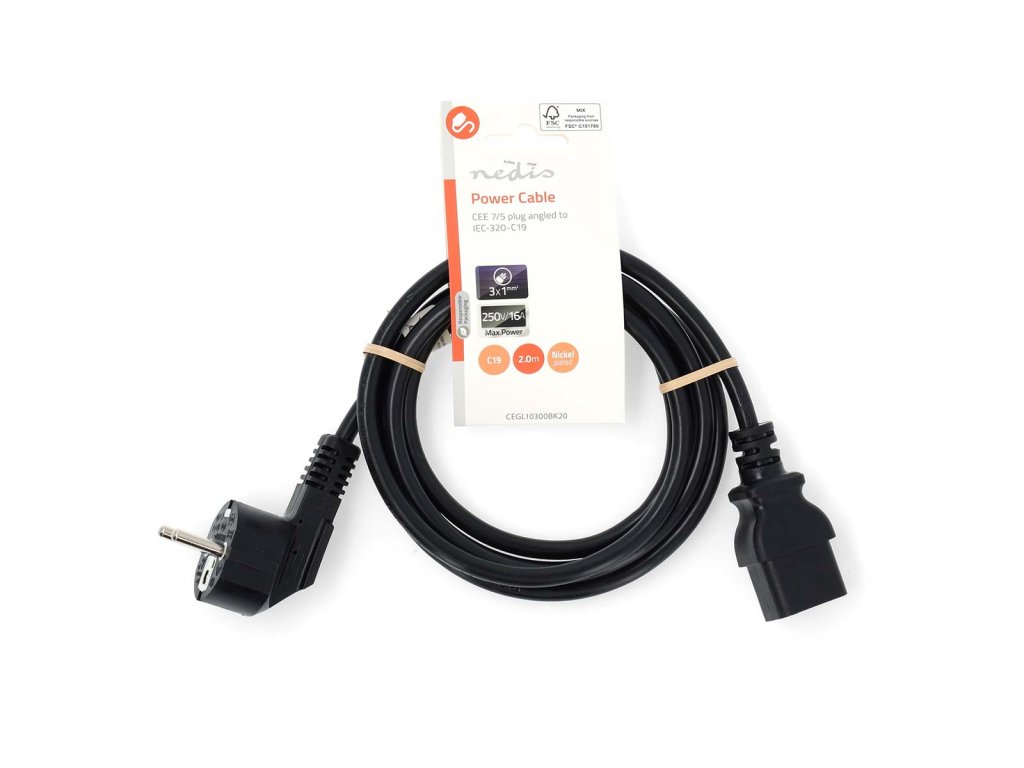 Napájecí kabel | Typ F Zástrčka | IEC-320-C19 | Úhlový | Přímý | Poniklované | 2.00 m | Kulatý | PVC | Černá | Label
