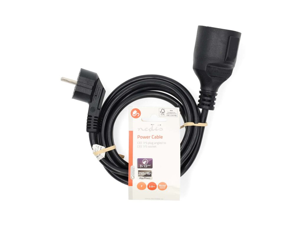 Napájecí kabel | Typ F Zástrčka | Typ F Zásuvka | Úhlový | Přímý | Poniklované | 2.00 m | Kulatý | PVC | Černá | Label