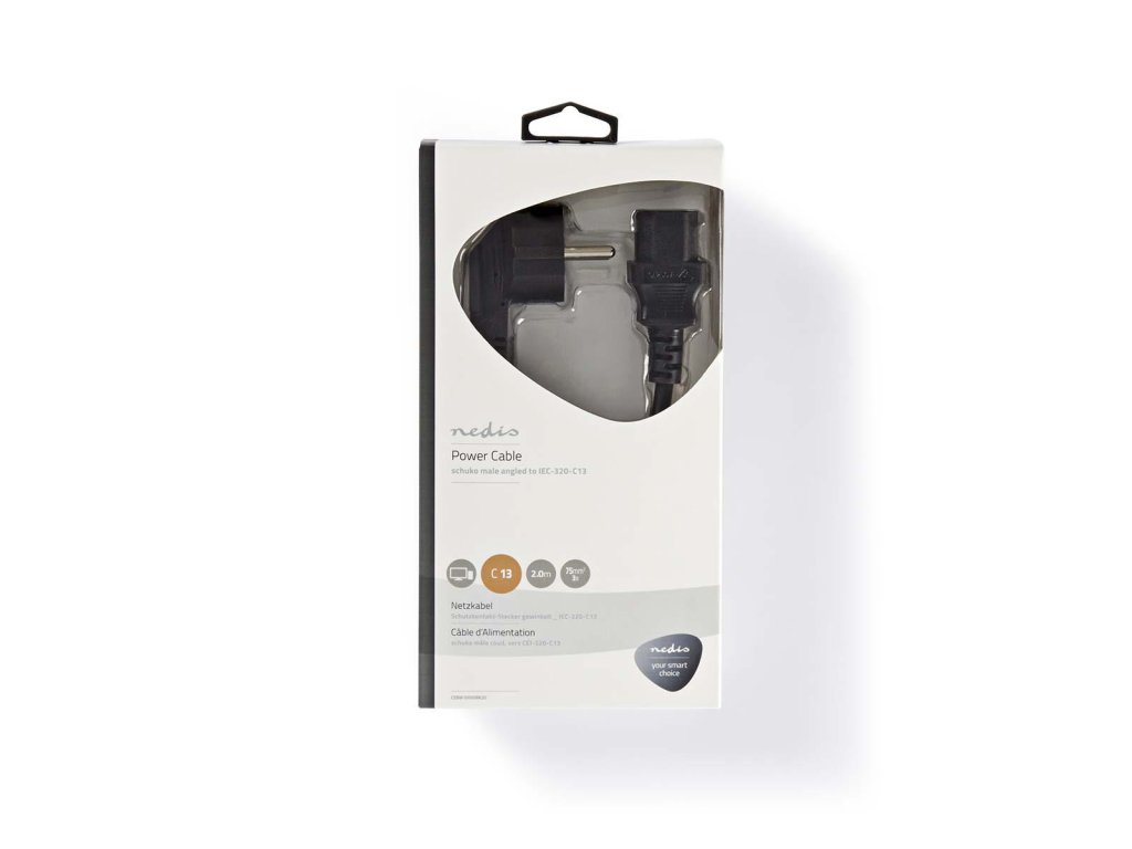 Napájecí Kabel | Úhlová zástrčka Schuko - C13 (IEC-230-C13) | 2 m | Černá barva