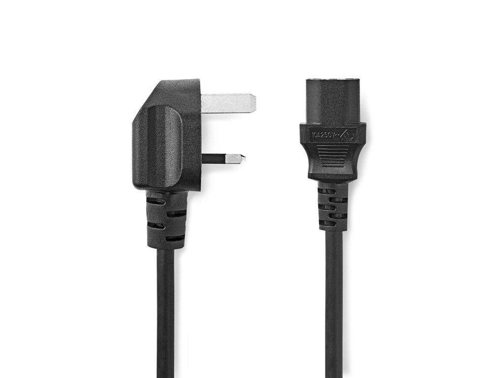 Napájecí kabel | UK Zástrčka | IEC-320-C13 | Úhlový | Přímý | Poniklované | 3.00 m | Kulatý | PVC | Černá | Label