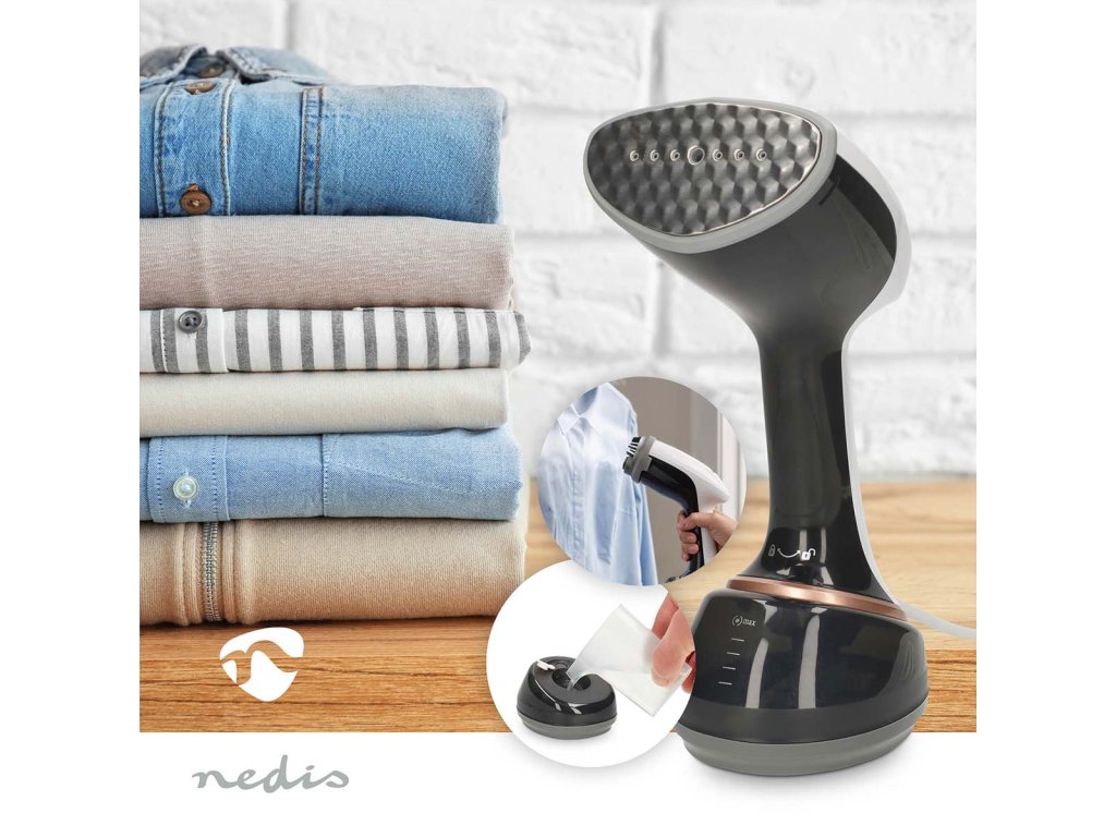 Ruční napařovač oděvů Nedis je kompaktní a multifunkční řešení určené pro domácí i cestovní použití. Jeho lehká konstrukce usnadňuje manipulaci a zároveň poskytuje profesionální péči o širokou škálu tkanin. Díky výkonné nepřetržité páře tento ruční napařovač rychle odstraňuje pomačkání a osvěžuje oděvy, záclony, čalounění, a dokonce i měkké hračky. Jeho dvoupolohové napařování umožňuje používat jej ve svislé nebo vodorovné poloze, což nabízí větší pohodlí pro různé oděvy a povrchy. Napařovač je bezpečný pro všechny žehlitelné tkaniny, je šetrný a přitom účinný, takže je vhodný i pro choulostivé oděvy, aniž by došlo ke zhoršení výsledků. Odnímatelnou nádržku na vodu o objemu 370 ml lze snadno naplnit a vyčistit, což zajišťuje nepřerušované napařování. Napařovač Nedis vybaven automatickým bezpečnostním vypnutím, které poskytuje ochranu během používání i po něm. Kompaktní, všestranný a účinný ruční napařovač oděvů Nedis je ideálním nástrojem pro udržení svěžího, hladkého a nemačkavého vzhledu oděvů a tkanin kdykoli a kdekoli.
