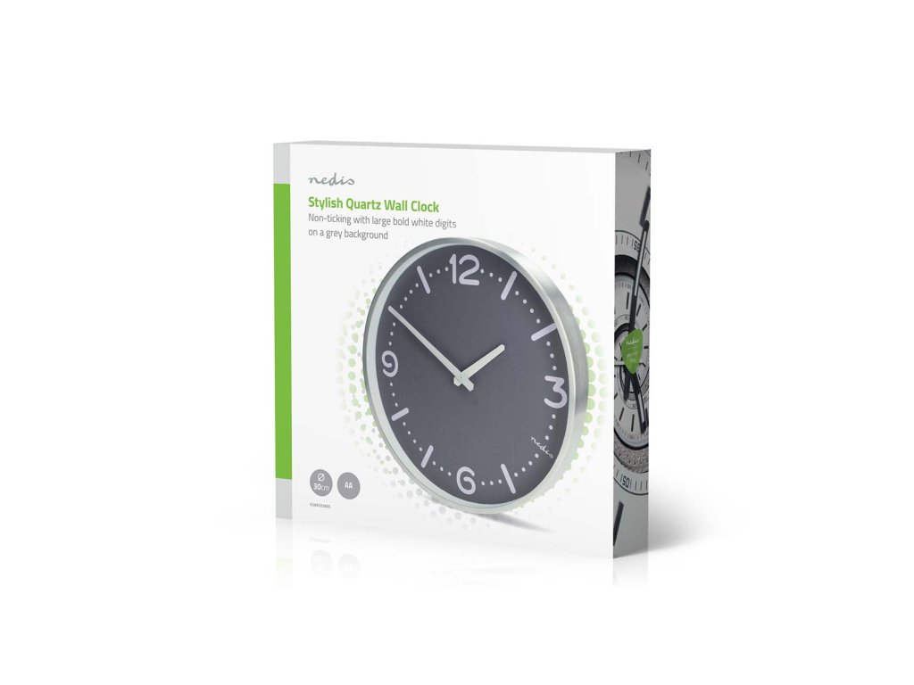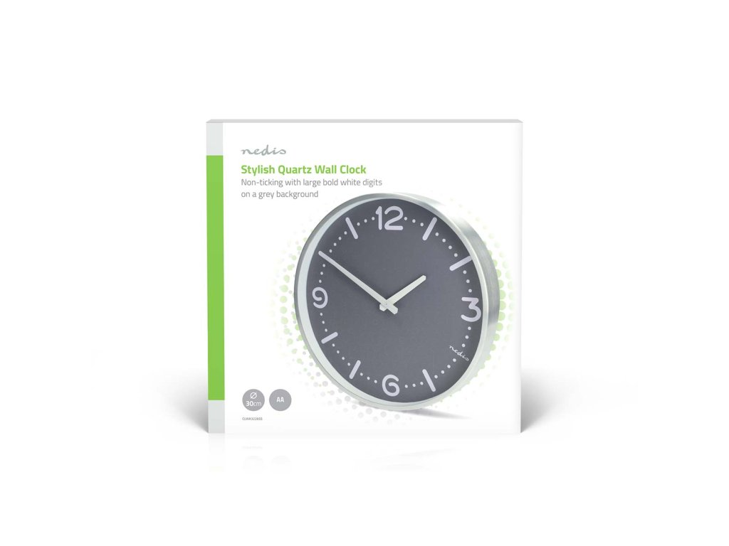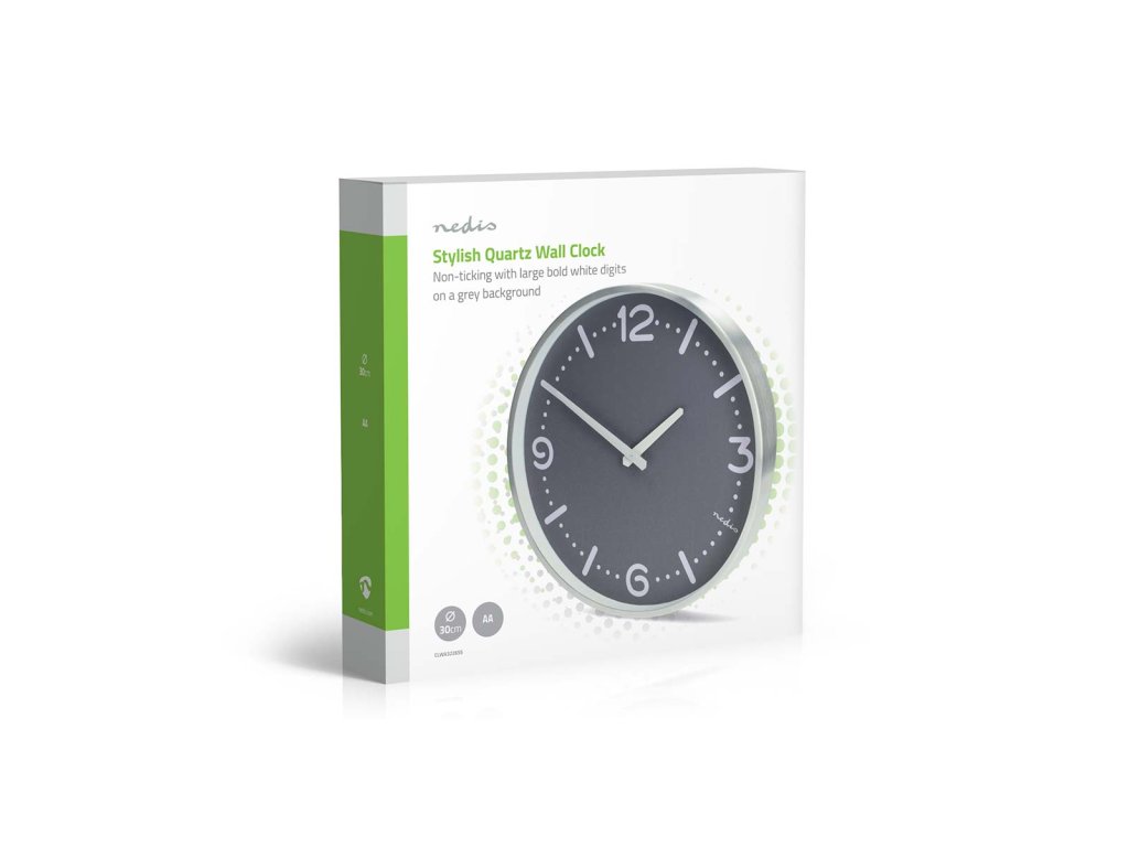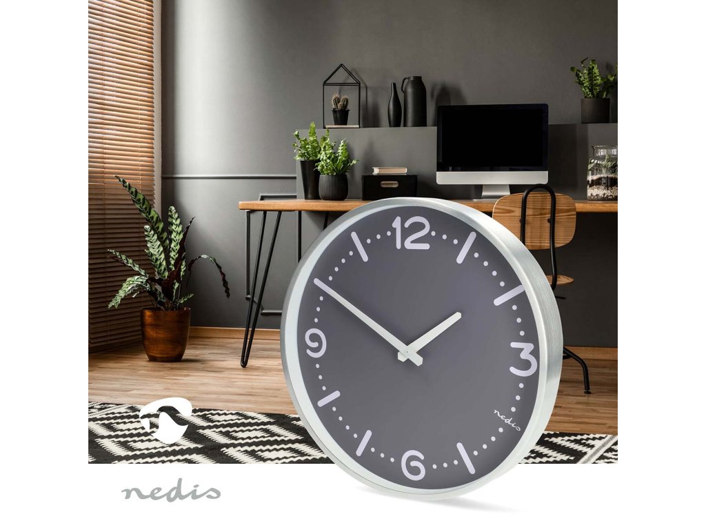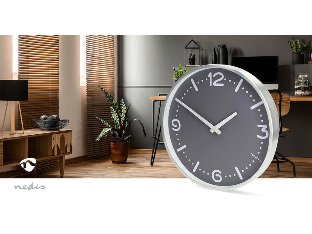 Nástěnné analogové hodiny Nedis dodají každému prostoru moderní nádech. Tyto nástěnné hodiny o průměru 30 cm kombinují spolehlivý výkon s elegantním designem a jsou ideálním časoměřičem do kanceláří, kuchyní, konferenčních místností a obytných prostor. Hodiny jsou vybaveny vysoce přesným quartzovým strojkem a nabízejí přesné a spolehlivé měření času. Jejich tichý chod se vyznačuje plynulým pohybem vteřinové ručičky bez rušivého tikání - ideální pro tiché prostředí, jako jsou zasedací místnosti nebo domácí kanceláře. Velké bílé číslice zřetelně vynikají na šedém ciferníku a zajišťují vynikající čitelnost na dálku. Tyto nástěnné hodiny jsou zarámované v odolné nerezové oceli s moderní povrchovou úpravou a bez problémů se hodí do moderních a profesionálních interiérů.