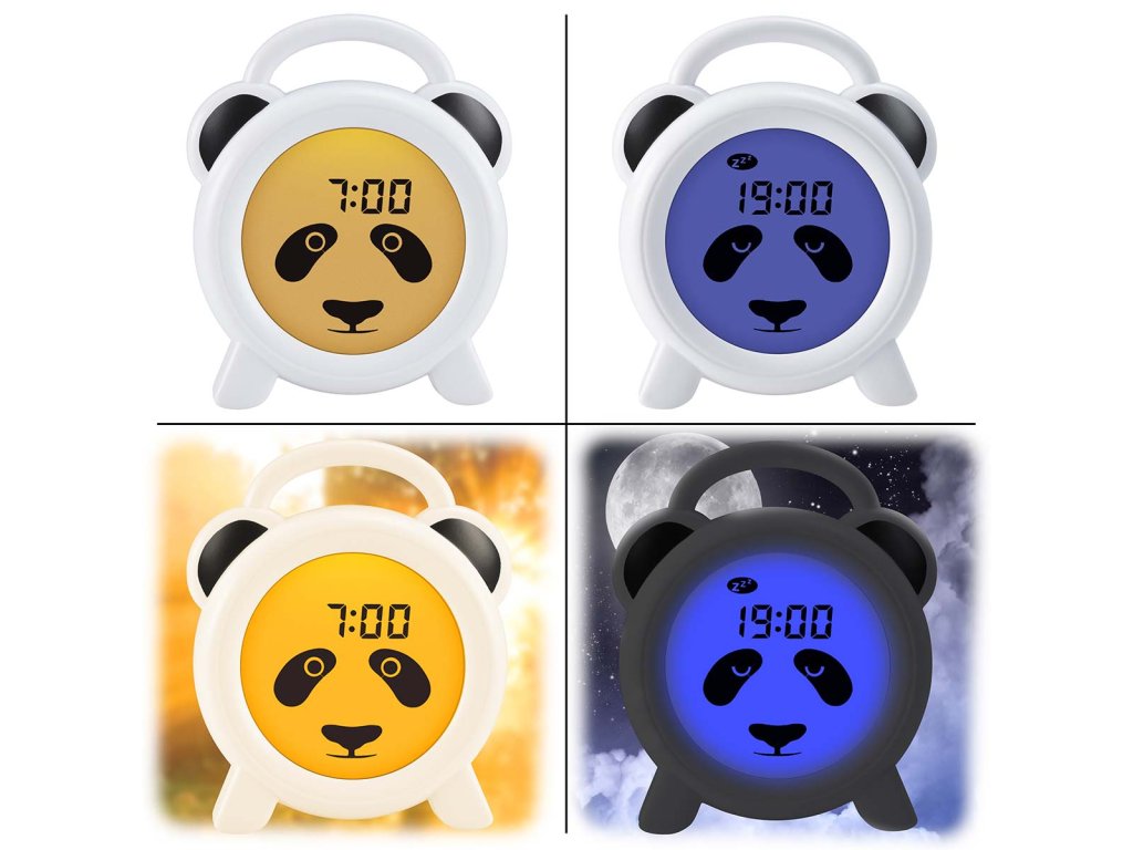 Šikovný budík s nočním světlem do dětského pokoje! Kompletní řešení pro získání přehledu o čase Trenažér na spaní BC100PANDA je komplexním řešením pro děti, které se hravou formou učí zacházet s časem. Spánkový rytmus je důležitým faktorem pro vývoj vašeho potomka. Tento praktický noční světelný budík zajišťuje každodenní pravidelnost, kterou děti mohou využívat po celý zbytek života. K plnému zotavení těla a mysli potřebují děti více spánku než dospělí. Často však nechápou, když si spokojeně hrají, že je čas jít spát. Aby děti získaly smysl pro (spánkový) čas, je řešením tento praktický budík s nočním světlem! Trenér spánku, funkce uspávání a buzení Tento praktický noční světelný budík funguje vynalézavým způsobem. Automaticky umožňuje dítěti zvyknout si na okamžik usnutí a také na to, kdy smí vaše dítě vstát. Jako rodič jednou nastavíte čas usínání a čas vstávání. V době spánku se displej změní na modrý a panda zavře oči. Od času probuzení se displej změní na oranžový a panda otevře oči. Vaše dítě podle barev na hodinách okamžitě pozná, kdy je čas spánku nebo čas vstávání. I když se vaše dítě probudí příliš brzy, bude vědět, že má ještě chvíli zůstat v posteli. To je samozřejmě velmi dobré pro noční spánek maminky a tatínka! Noční světlo Díky hravému a jednoduchému designu se hodiny hodí do každého dětského pokoje. Tento šikovný budík s nočním světlem je bezdrátový a dobíjecí (pomocí vestavěné baterie a přiloženého USB kabelu) a lze jej používat i samostatně jako hodiny s budíkem. Displej hodin funguje také jako noční světlo a dodává dítěti pocit bezpečí.