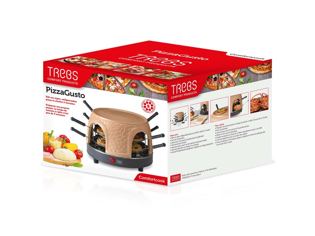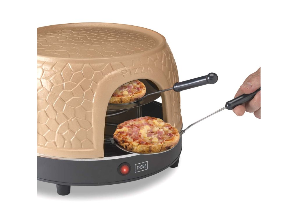 Trebs Pizza Oven 99392 PizzaGusto je stolní gril s neobvyklým nádechem. Když vás omrzí fondue nebo prostě chcete vyzkoušet něco nového, PizzaGusto je jasnou volbou. Ať už se jedná o jakékoliv prostředí - jídlo s rodinou nebo s přáteli - pizza bude to jediné, co budete chtít jíst. Během chvilky se z vás stane skutečný pizzař. Připravte 8 samostatných minipizz v terakotové kopuli nebo upečte jednu velkou pizzu uprostřed pro celou rodinu. I když je pec mimořádně velká, kůrka pizzy je stále lahodně křupavá, stejně jako pizza pečená ve skutečné kamenné peci. Výsledek zůstává optimální i přes výšku terakotové kopule a skutečnost, že se pizzy pečou na sobě. Těsto uhněťte, vyválejte a vykrajujte základy pomocí vykrajovátka, které je součástí balení. Nakrájejte různou zeleninu, salám, kousky kuřecího masa nebo šunky, základ pizzy potřete rajčatovou omáčkou a posypte sýrem. Možnosti jsou nekonečné. Položte domácí pizzu na pečicí stěrku, zasuňte ji do trouby a po 5 minutách si na ní pochutnejte. Kromě toho, že je pec na pizzu Trebs 99392 PizzaGusto originální variací na tradiční stolní gril, je ideální také pro pečení sušenek. Ideální zakončení úspěšného jídla. Trouba na pizzu Trebs Pizza Oven 99392 PizzaGusto se snadno čistí. Jednotlivé součásti lze mýt v myčce nádobí a snadno skladovat. Trebs Pizza Oven 99392 PizzaGusto se dodává s recepty na těsto na pizzu, na rajčatovou omáčku a praktickým řezákem, který zajistí, že základ pizzy dokonale padne na stěrku.