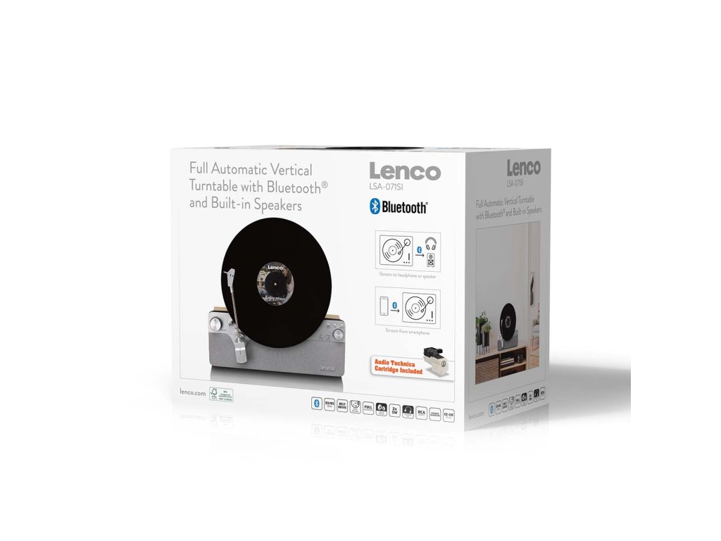 Gramofon Lenco se vzpřímenou konstrukcí? Sen, který už nemusí zůstat nesplněný! S revolučním přehrávačem Lenco LSA-071SI spojíte kouzlo vinylu s inovativním a estetickým designem, který ohromí každého milovníka hudby. Lenco LSA-071SI je plně automatický vertikální gramofon s vestavěnými reproduktory a Bluetooth®, který je navržen tak, aby poskytoval jedinečný zážitek z poslechu a zároveň sloužil jako stylový doplněk vašeho interiéru. Přehrávání desek ve svislé poloze je technická výzva, ale s přehrávačem LSA-071SI to neohrozí kvalitu zvuku! Je to díky vlastnostem, jako je stabilní řemenový pohon, integrovaný stereofonní zesilovač, vysoce kvalitní kazeta Audio-Technica AT-3600L a plně automatické funkce gramofonu. Objevte, jak Lenco LSA-071SI vertikálně a plně automaticky oživí vaši sbírku vinylů!