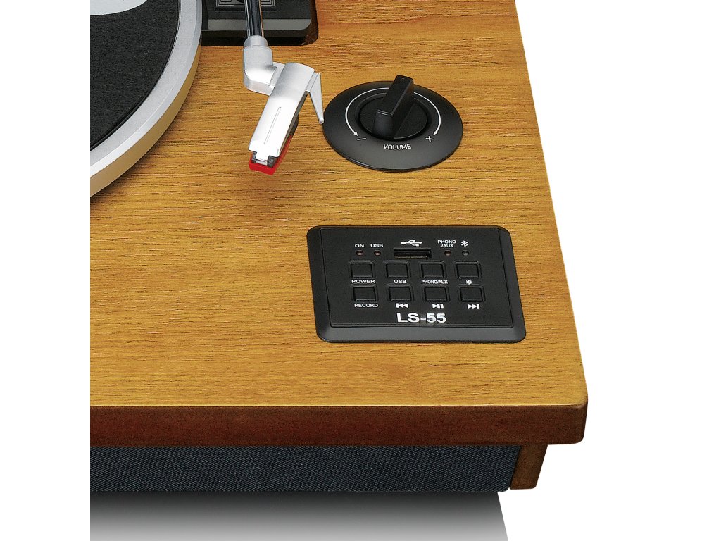 LS-55 je krásný dřevěný gramofon s vestavěnými stereofonními reproduktory. Je ideální volbou pro milovníky vinylů a díky vestavěnému zesilovači a širokému frekvenčnímu rozsahu poskytuje vysoce kvalitní zvuk. Tento gramofon skutečně zachytí podstatu vaší sbírky vinylových desek. V průběhu let mohly vaše desky zestárnout a zchátrat. Abyste o svou oblíbenou hudbu nepřišli, můžete svou cennou sbírku vinylů snadno digitalizovat na USB disk. Ať už půjdete kamkoli, budete mít svou oblíbenou hudbu vždy s sebou. Elegantní vzhled se snoubí s moderním pohodlím • Tento gramofon kombinuje moderní technologie s klasickým designem a jeho luxusní dřevěné provedení doplní výzdobu každé místnosti. • Součástí balení je ochranný kryt proti prachu a plstěná protiskluzová podložka. • gramofon 3 rychlosti (33/45/78 ot./min.) s řemenovým pohonem a systémem automatického zastavení • Přehrávač USB a přímý kodér do formátu MP3 • Bezdrátové připojení Bluetooth® k přenosnému zvukovému zařízení • Pasivní zářič pro lepší BASS efekt Technické vlastnosti: - Vnitřní reproduktory s vysokým výkonem, které umožňují přehrávat hudbu z různých zdrojů: • Výstupní výkon: 2 x 5 W RMS • Připojení: USB, vstup AUX, vstup RCA • Barva: dřevo • Rozměry: 43,5 x 37 x 14,5 cm (š x h x v) Co je součástí balení? • Gramofon Lenco LS-55WA • Manuál NL / EN / DE / FR / ES
