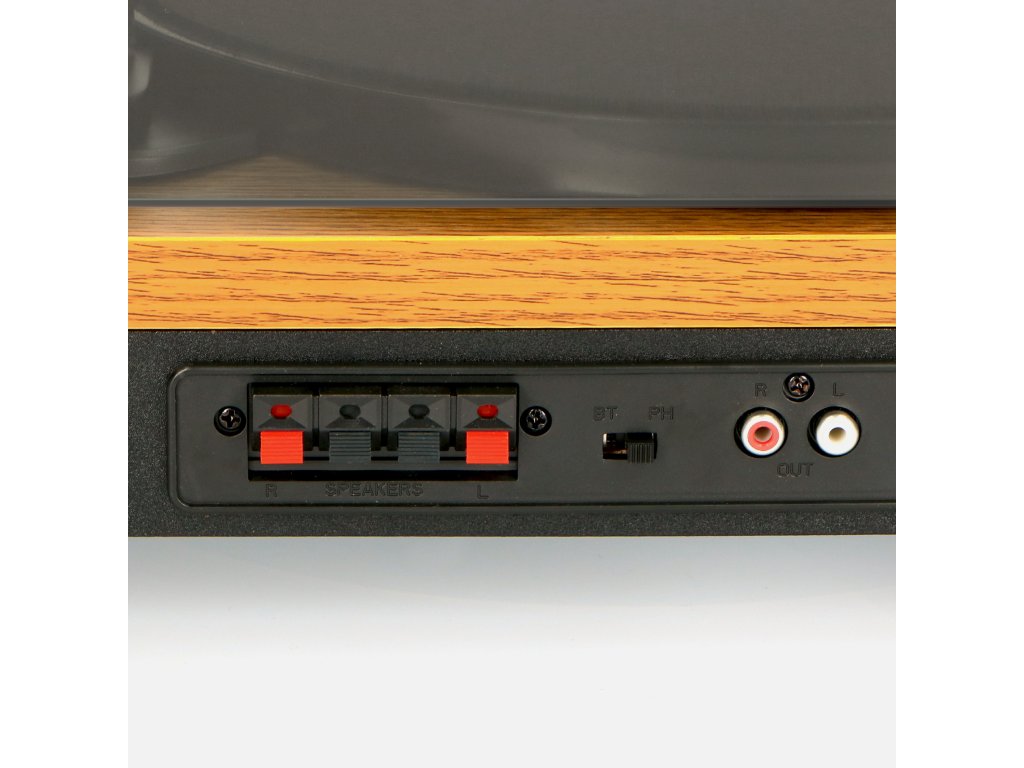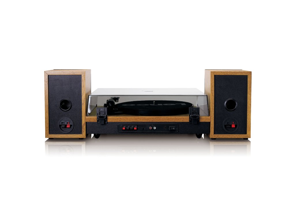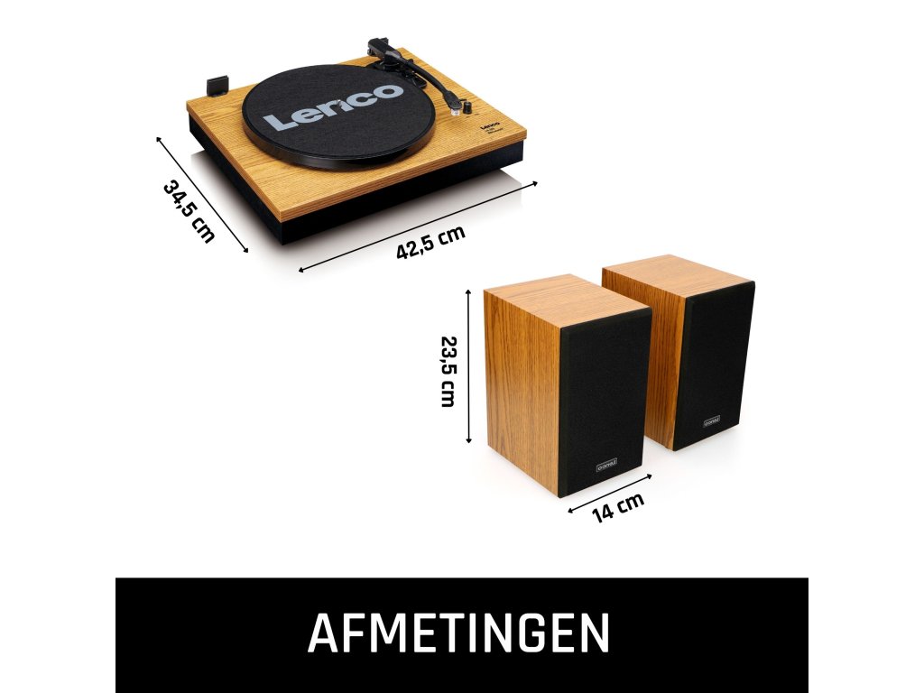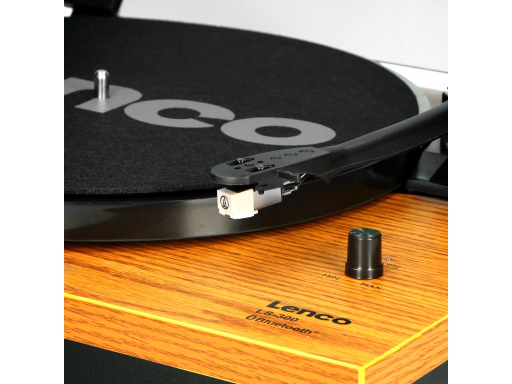 The Lenco LS-300 is a record player system with 2 separate wooden speakers. Enjoy listening to your vinyl in no time, with a quality record player and an easy setup, via speakers. The speakers can also be placed separately from the player, ideal for a real stereo effect. You can easily switch from 33 to 45 RPM to play your previous LPs or single records. With the 2 separate wooden speakers, you can fill any room with music. The record player also has Bluetooth® so you can easily stream music from your smartphone or Bluetooth® device. At Lenco, we understand how important it is to preserve your vinyl. The Lenco LS-300 is equipped with an auto-stop. This function causes the record to stop rotating and prevents scratches from occurring, allowing you to enjoy your precious records for longer. The Lenco LS-300 has a plastic cover to ensure your Lenco record player remains free from dust when not in use. Included is a CE-UK multi-plug, AC adapter. Available in 2 colours: wood and black What's in the box? • record player • Element • AC adapter • Adapter plug • Mat • 45 RPM adapter • Dust cover • Loudspeaker 2x • Loudspeaker cable 2x • Manual NL/EN/DE/FR/ES • Extra instruction card