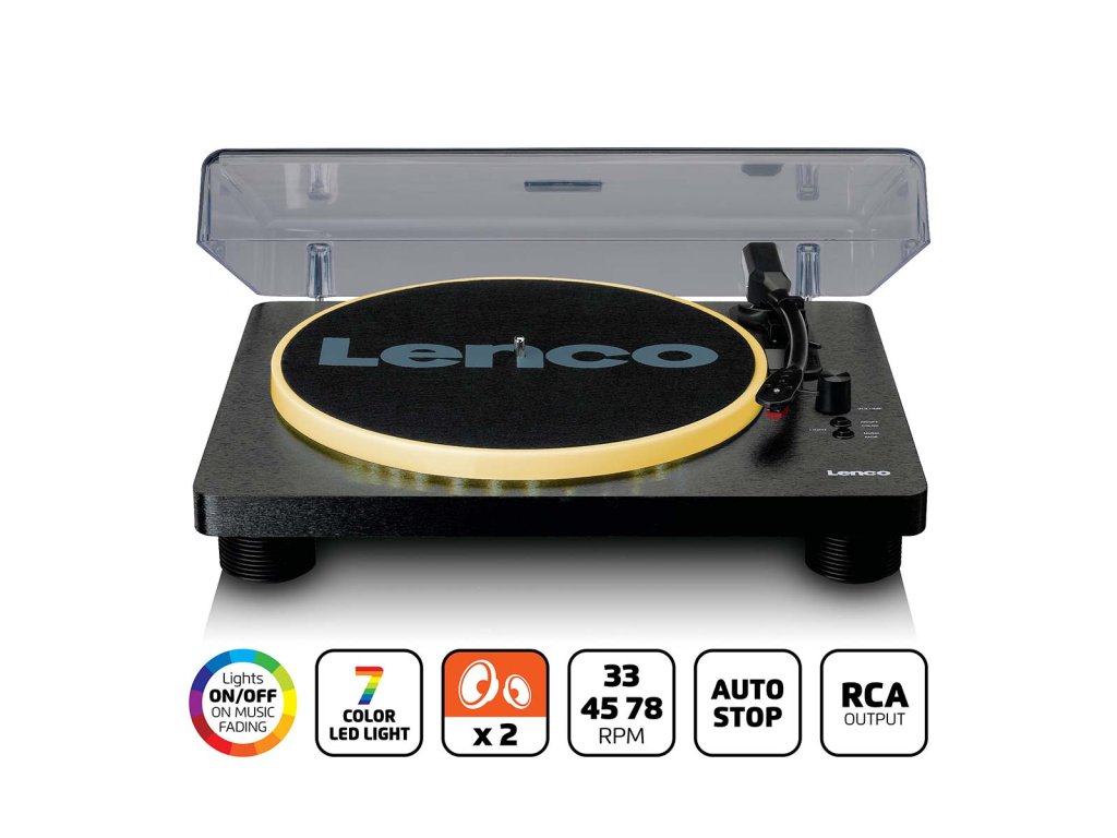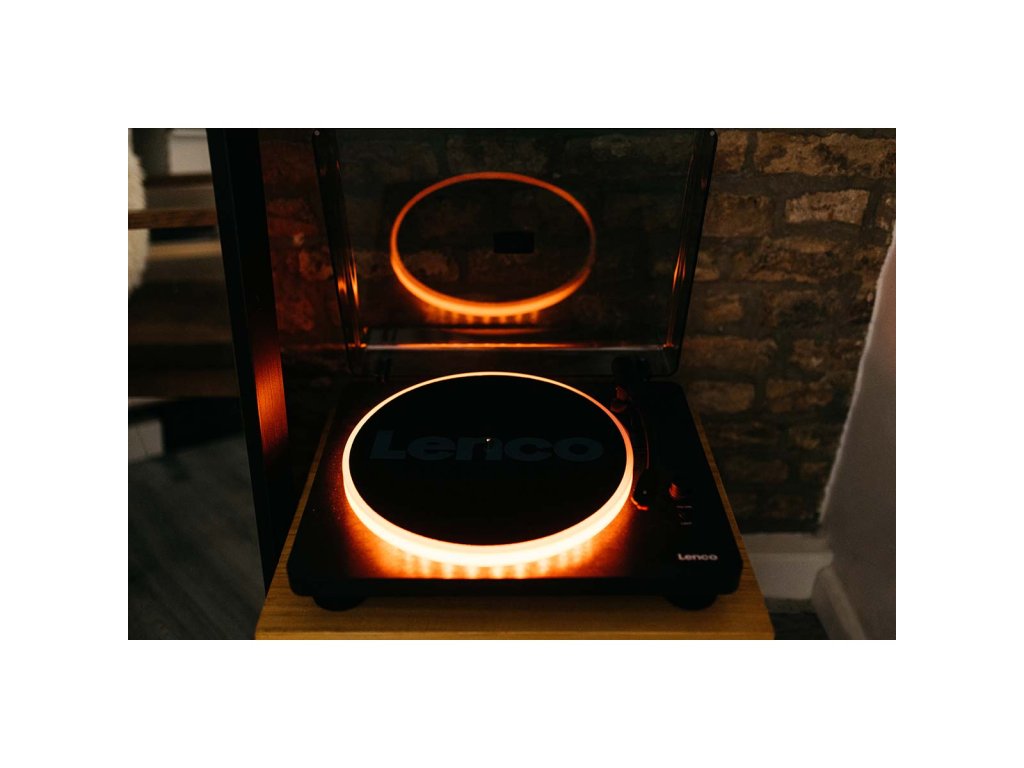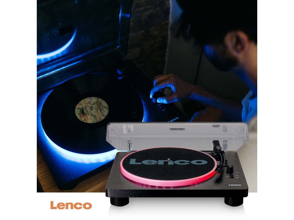 Lenco LS-50LED je moderní gramofon se dvěma vestavěnými reproduktory a světelnou animací LED v desce. Barvy světel se mění podle úderů hudby, můžete zvolit funkci automatického stmívání nebo si svou oblíbenou barvu zvolit ručně. Gramofon je možné používat i bez světel. Vychutnejte si svůj oblíbený vinyl pouhým stisknutím tlačítka. Zapomeňte na složité hudební instalace, protože s přehrávačem Lenco LS-50LED můžete bez námahy oživit své desky. Ať už posloucháte jakoukoli desku, můžete snadno změnit rychlost z 33 na 45 nebo 78 otáček za minutu. Pro zvýšení hlasitosti použijte externí reproduktory a RCA spojku na zadní straně přehrávače a naplňte hudbou každou místnost! Chtěli byste svou oblíbenou desku poslouchat také prostřednictvím notebooku nebo telefonu? Svou aktuální desku můžete v mžiku převést do digitálních souborů prostřednictvím portu USB. Lenco LS-50LED se dodává s odnímatelným protiprachovým krytem, který chrání gramofon před nečistotami. Přítlak jehly můžete snadno nastavit pomocí nastavitelného protizávaží. S přehrávačem Lenco LS-50LED si budete moci vychutnat léta hudby z minulosti, přehrávané na současném zařízení.