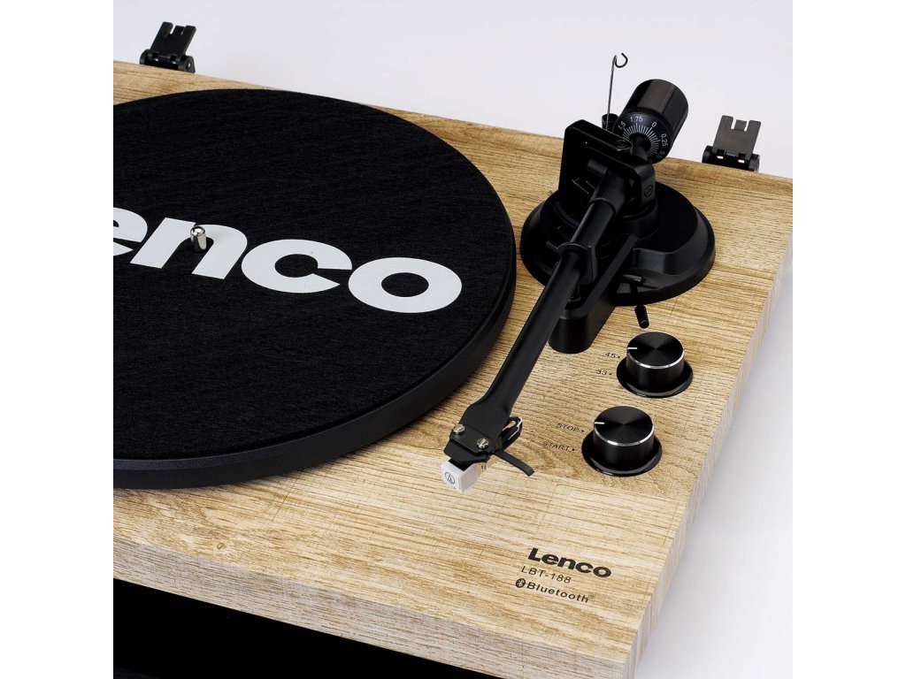 Lenco LBT-188 je gramofon s funkcí Bluetooth®. Připojení tohoto přehrávače k reproduktoru Bluetooth® nebo sluchátkům je snadné a pohodlné a poskytuje ideální nastavení pro vychutnání plného teplého zvuku při domácím lenošení na gauči. Vyzvedněte své staré desky z půdy a přehrajte si je na tomto moderním gramofonu. Vychutnejte si křišťálově čistý zvuk svých starých i nových vinylů. Přepínejte z 33 na 45 otáček za minutu a přehrávejte vinylovou desku tou správnou rychlostí. Součástí balení je systém převodu analogového signálu na digitální, s připojením USB snadno archivujte své drahocenné vinyly do počítače pomocí portu USB na zadní straně přehrávače. LBT-188 má kovový talíř gramofonu, řemenový pohon, připojení RCA a rameno s protizávažím. Plastový kryt zajišťuje, že váš gramofon nezmizí pod vrstvou prachu, a chrání jej před jakýmkoli vnějším poškozením. Gramofon je dodáván včetně CE-UK multizástrčky a síťového adaptéru.