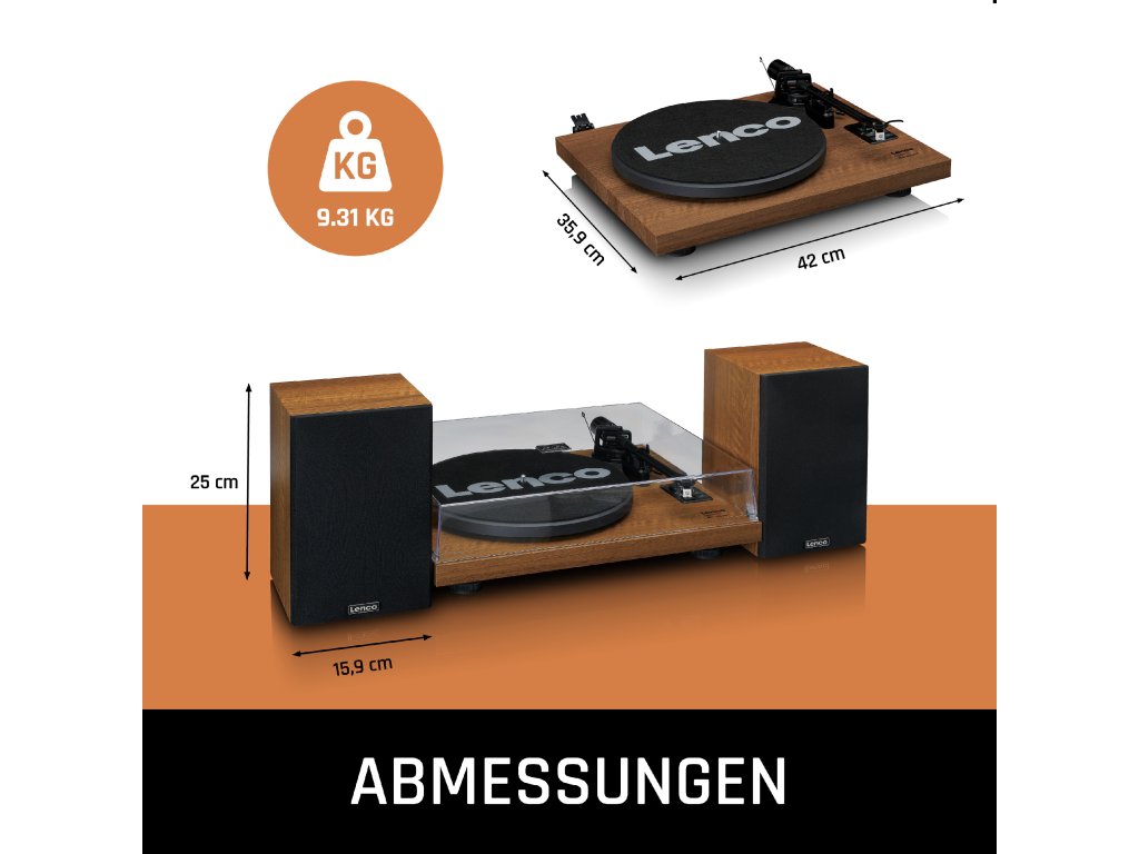 Lenco LS-480WD se dodává jako kompletní balení, včetně přehrávače, dvou dřevěných reproduktorů, reproduktorových kabelů, prachové krytky a vícejazyčného manuálu. Každá součást je navržena tak, aby poskytovala bezproblémový a příjemný zážitek z poslechu vinylů.