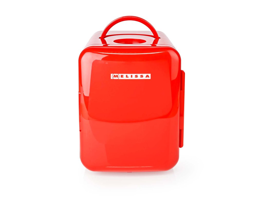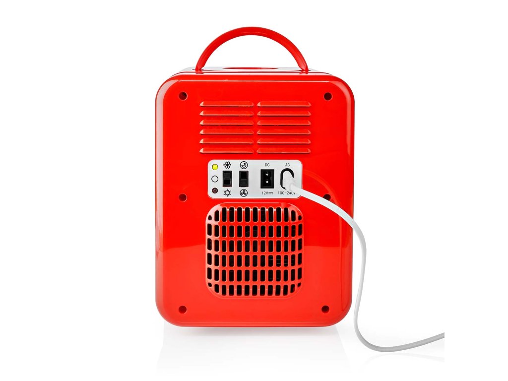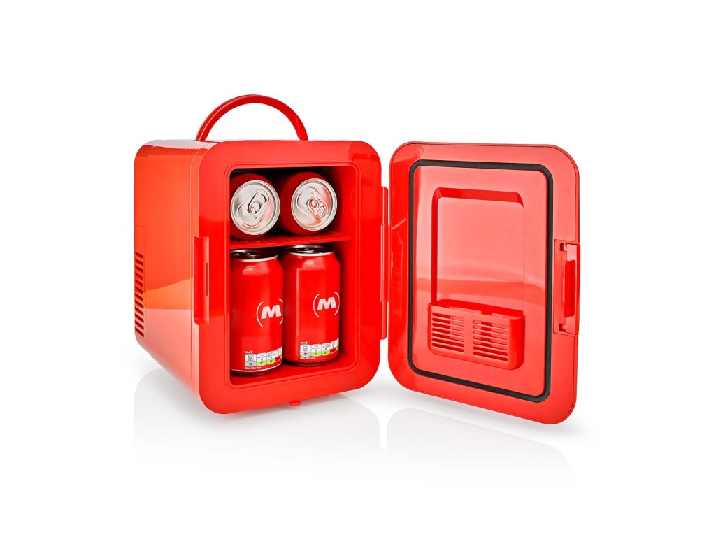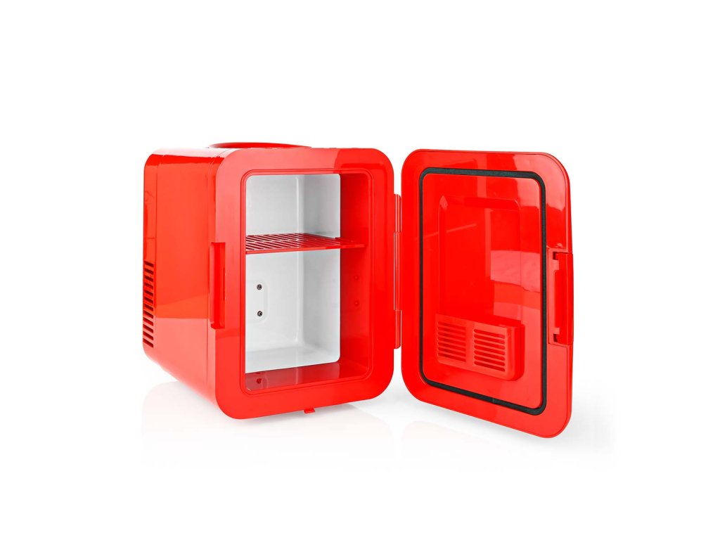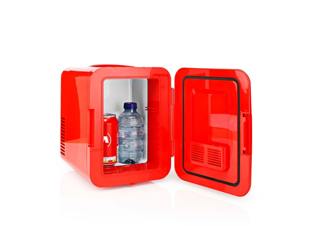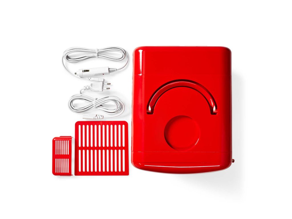 Přenosná mini chladnička | 6 plechovek / objem 4 l | 100-240 V / 12 V | Funkce ohřevu / chlazení | Rukojeť pro přenášení | Červená barva