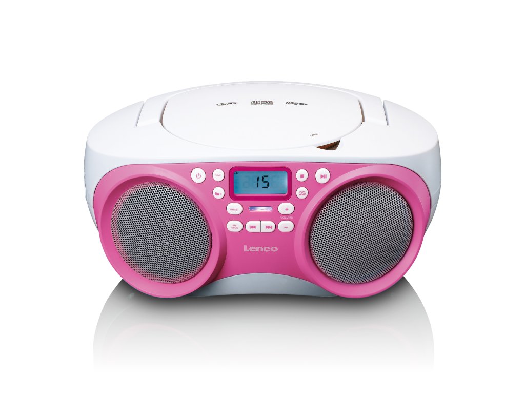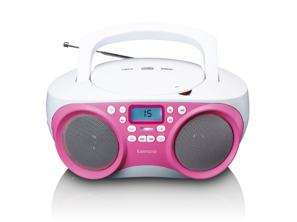Přenosné FM rádio/CD/MP3 a USB přehrávač Růžová barva