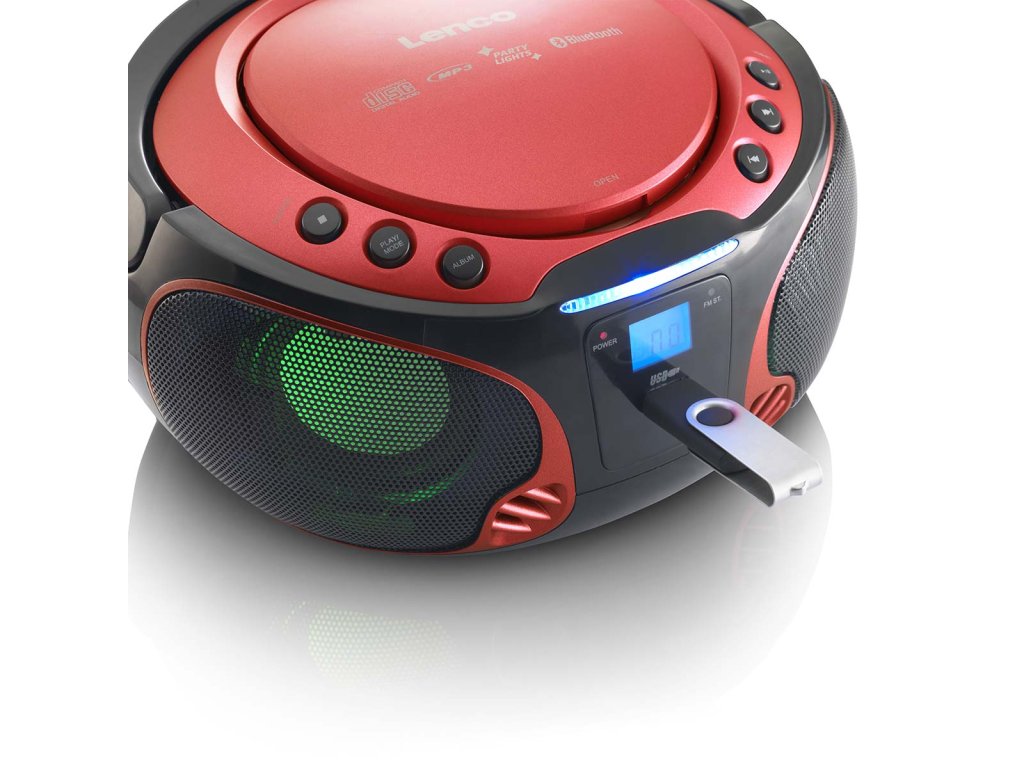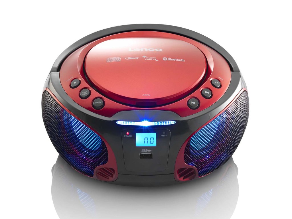 Přenosné FM rádio CD/MP3/USB/Bluetooth® přehrávač s LED osvětlením Červená