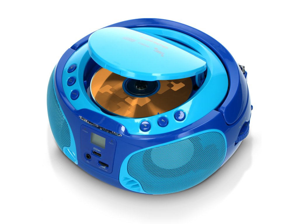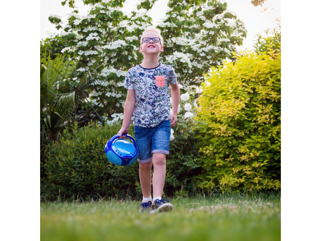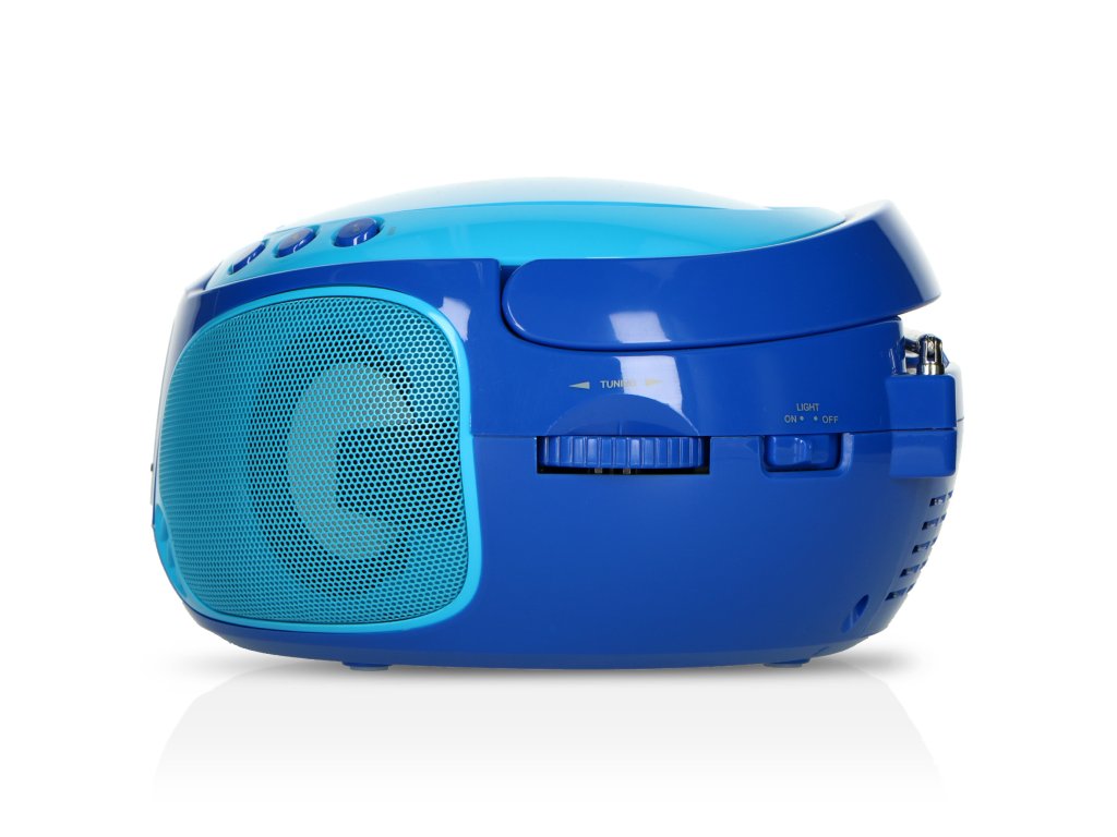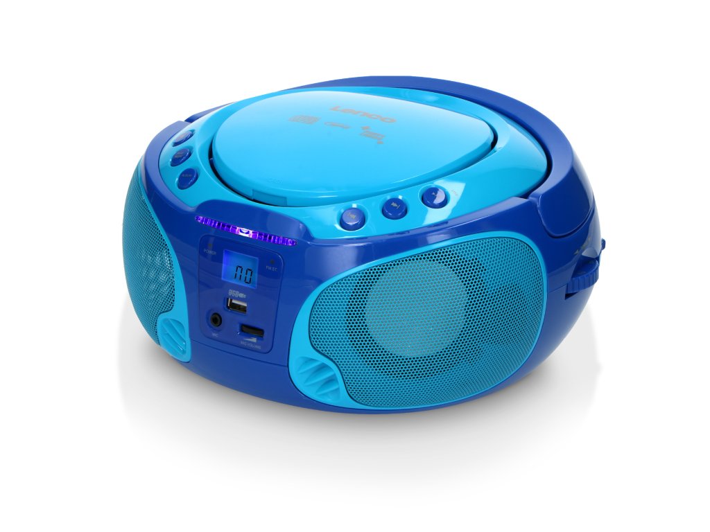 Přenosné FM rádio CD/MP3/USB Mikrofon a světelné efekty Modrá barva