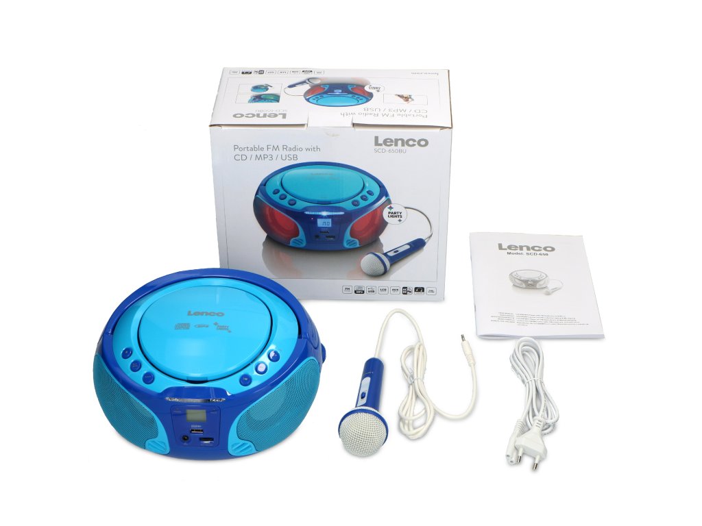 Lenco SCD-650 je přenosné karaoke rádio/CD/MP3/USB přehrávač pro malé i velké. Díky svému zjednodušenému designu se Lenco SCD-650 snadno používá. Přehrávač Lenco SCD-650 můžete připojit k elektrické síti nebo k napájení z baterie a stisknutím tlačítka si můžete okamžitě vychutnat své oblíbené CD nebo rozhlasovou stanici. Lenco SCD-650 je vybaven kabelem pro připojení USB a mikrofonem, takže si můžete uspořádat vlastní karaoke párty. Lenco SCD-650 má kompaktní rozměry, díky nimž je zcela přenosný, takže jej můžete snadno přenášet, vzít s sebou do parku nebo na večírek s přáteli. Vstaňte a tančete na melodie z přenosného rádia a zpívejte spolu s hity svého oblíbeného interpreta. Přehrávač Lenco SCD-650 vnese do vaší hudby barvy!