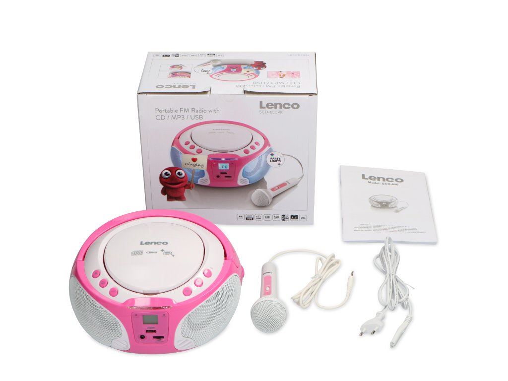 Lenco SCD-650 je přenosné karaoke rádio/CD/MP3/USB přehrávač pro malé i velké. Díky svému zjednodušenému designu se Lenco SCD-650 snadno používá. Přehrávač Lenco SCD-650 můžete připojit k elektrické síti nebo k napájení z baterie a stisknutím tlačítka si můžete okamžitě vychutnat své oblíbené CD nebo rozhlasovou stanici. Lenco SCD-650 je vybaven kabelem pro připojení USB a mikrofonem, takže si můžete uspořádat vlastní karaoke párty. Lenco SCD-650 má kompaktní rozměry, díky nimž je zcela přenosný, takže jej můžete snadno přenášet, vzít s sebou do parku nebo na večírek s přáteli. Vstaňte a tančete na melodie z přenosného rádia a zpívejte spolu s hity svého oblíbeného interpreta. Přehrávač Lenco SCD-650 vnese do vaší hudby barvy!