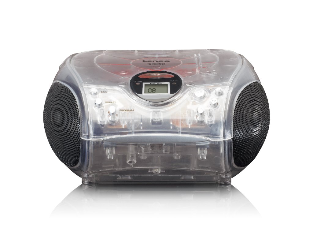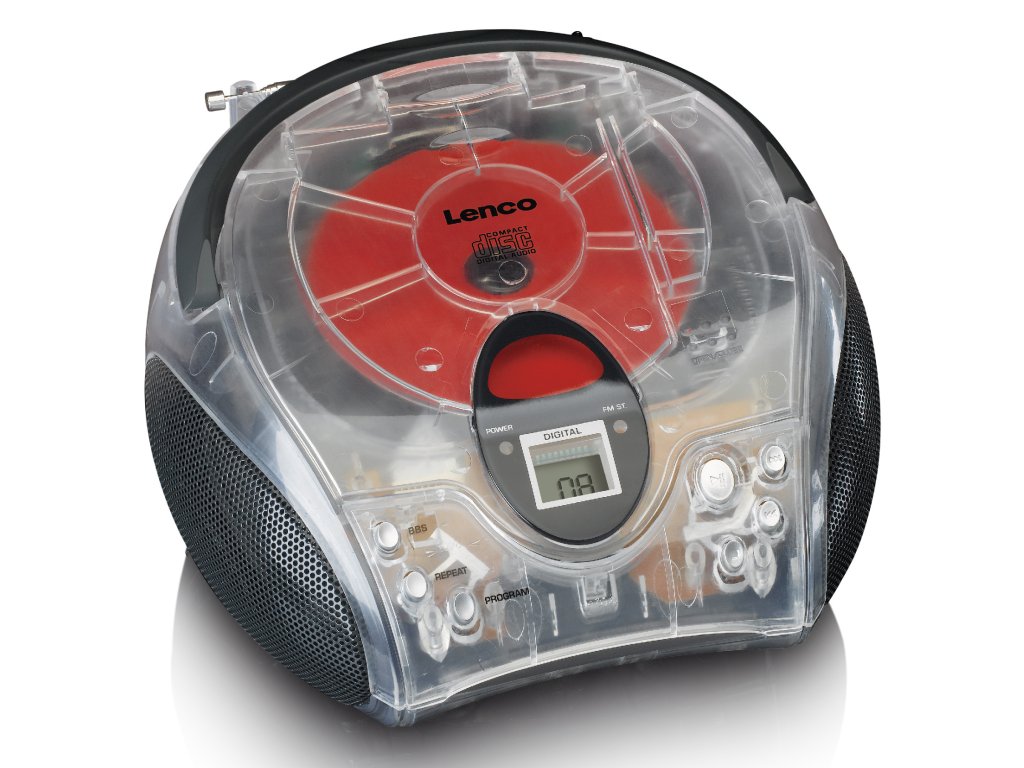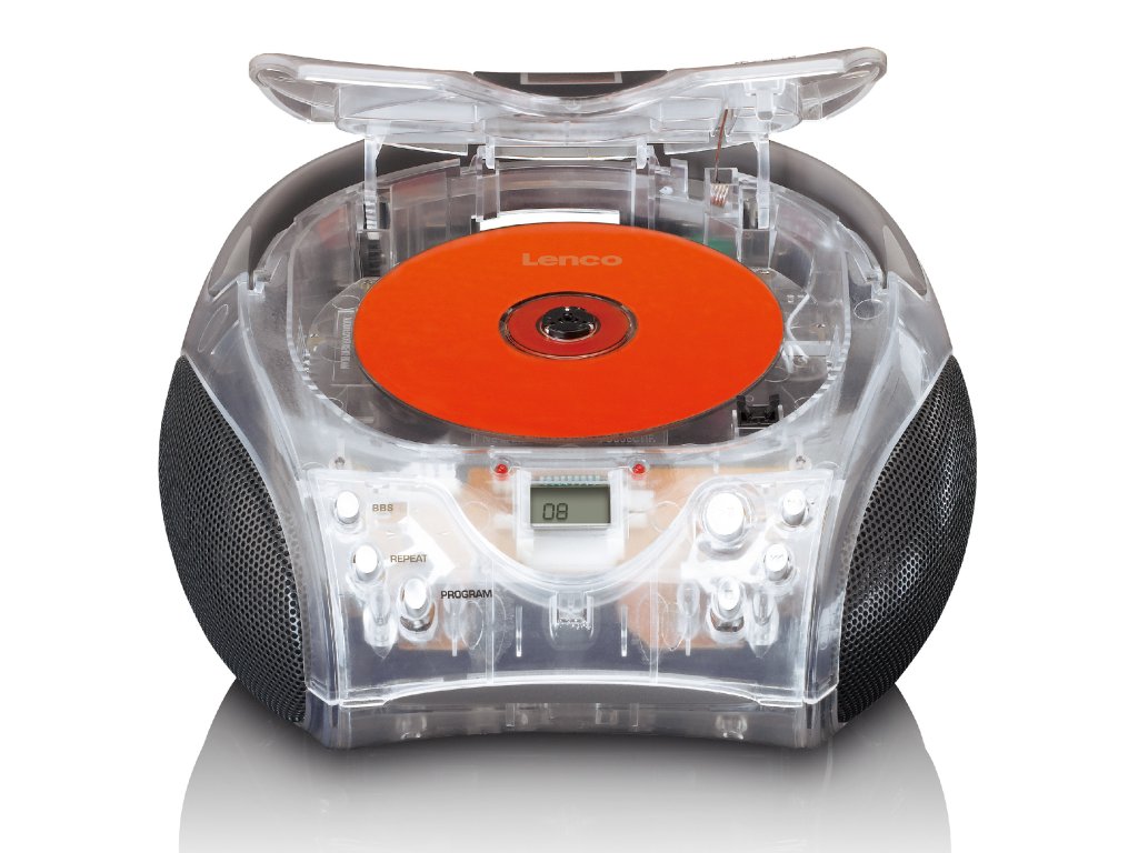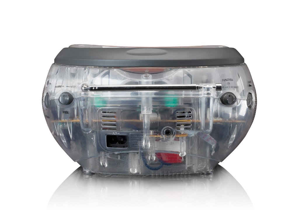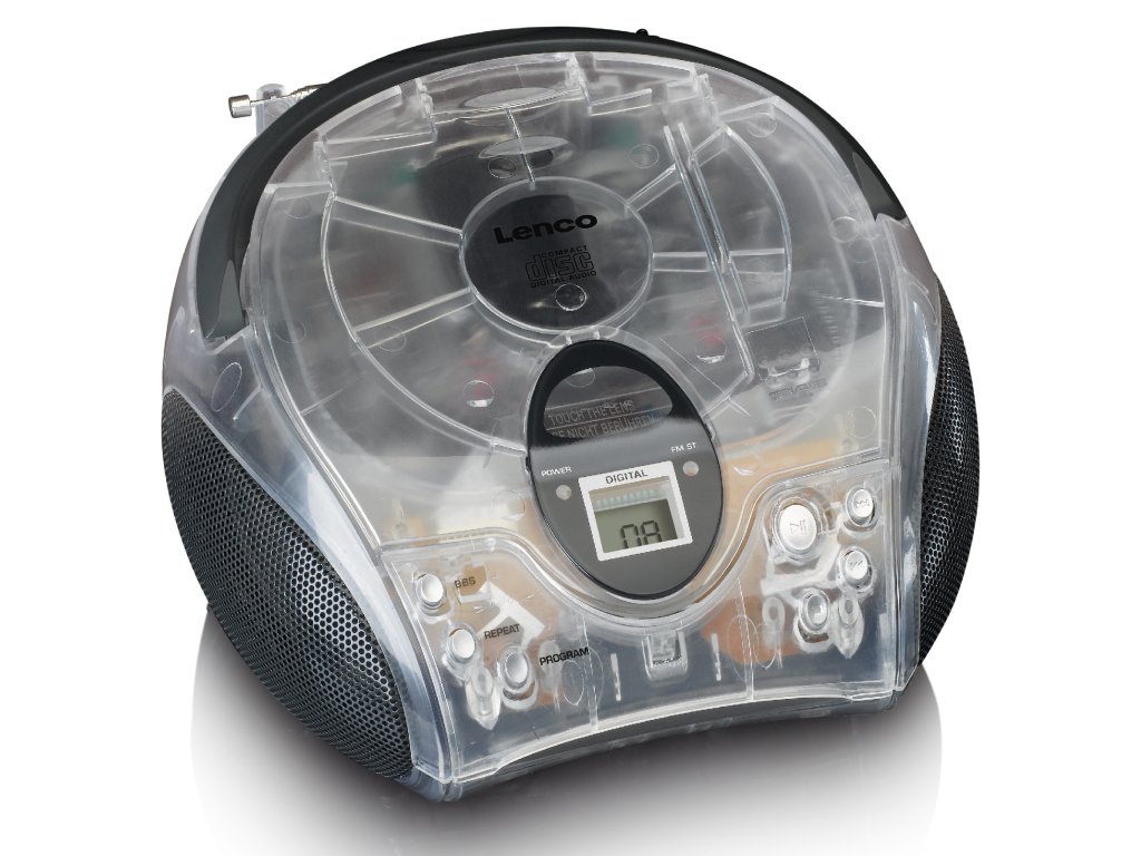 Přenosné stereofonní rádio FM s přehrávačem CD Transparentní