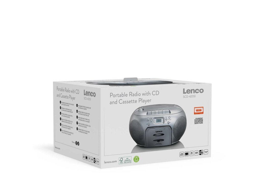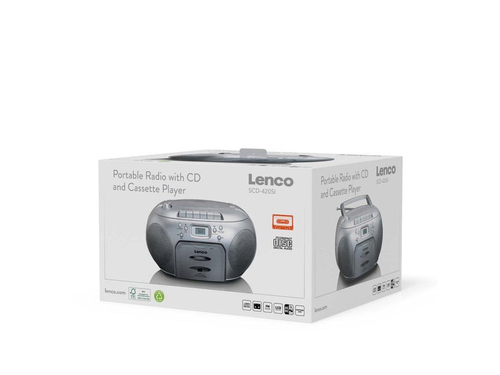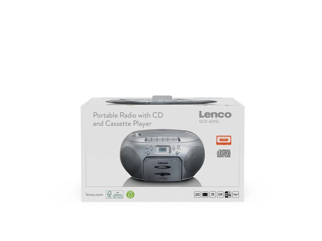 Přehrávač Lenco SCD-420SI vám umožní poslouchat oblíbenou hudbu kdekoli a kdykoli budete chtít. Kompaktní rozměry a hmotnost pouhých 1,98 kg usnadňují přenášení rádia. Model SCD-420SI je vybaven přehrávačem CD, kazetovým přehrávačem a konektorem pro sluchátka, což zajišťuje vysokou kvalitu zvuku. Po doplnění vaší sbírky o tento výrobek už neexistuje žádná výmluva, proč neuspořádat večírek. Tak na co ještě čekáte? Oživte hudbu všude: objednejte si ji nyní a zjistěte, jak jednoduchý a všestranný může být poslech rádia!