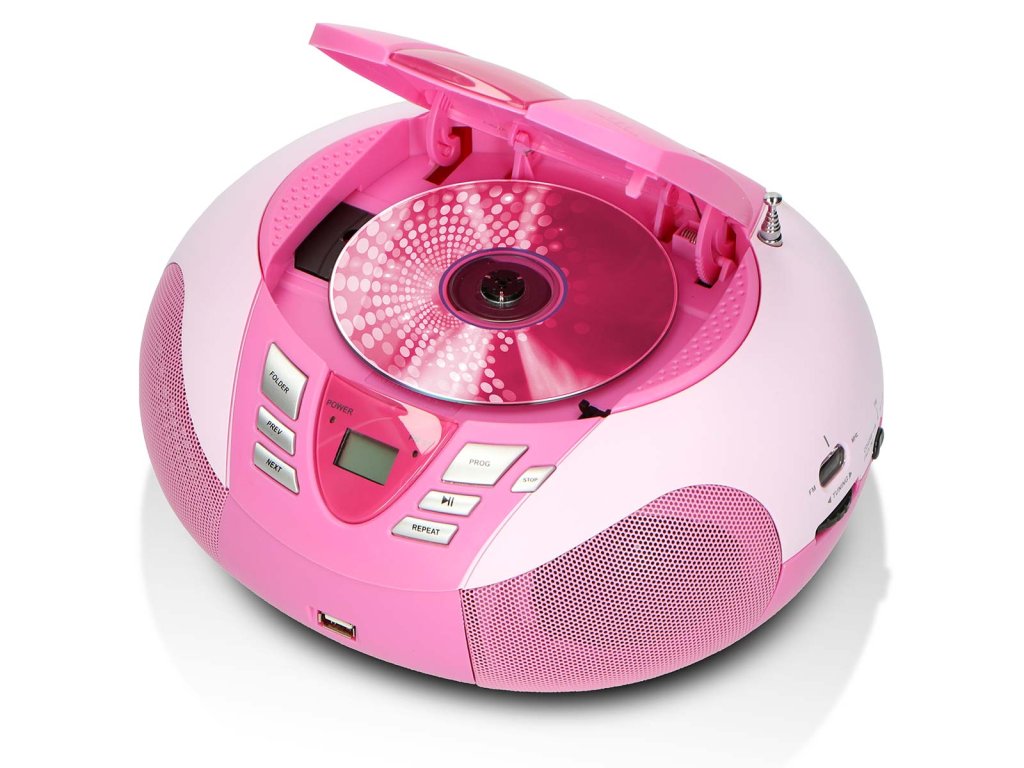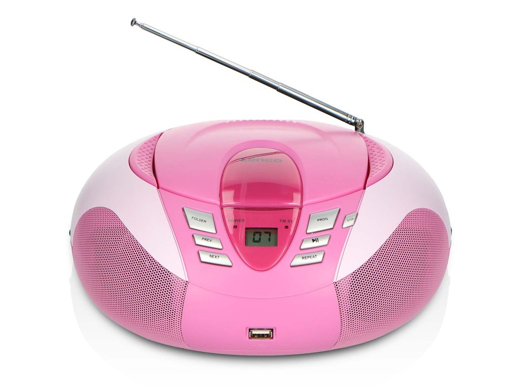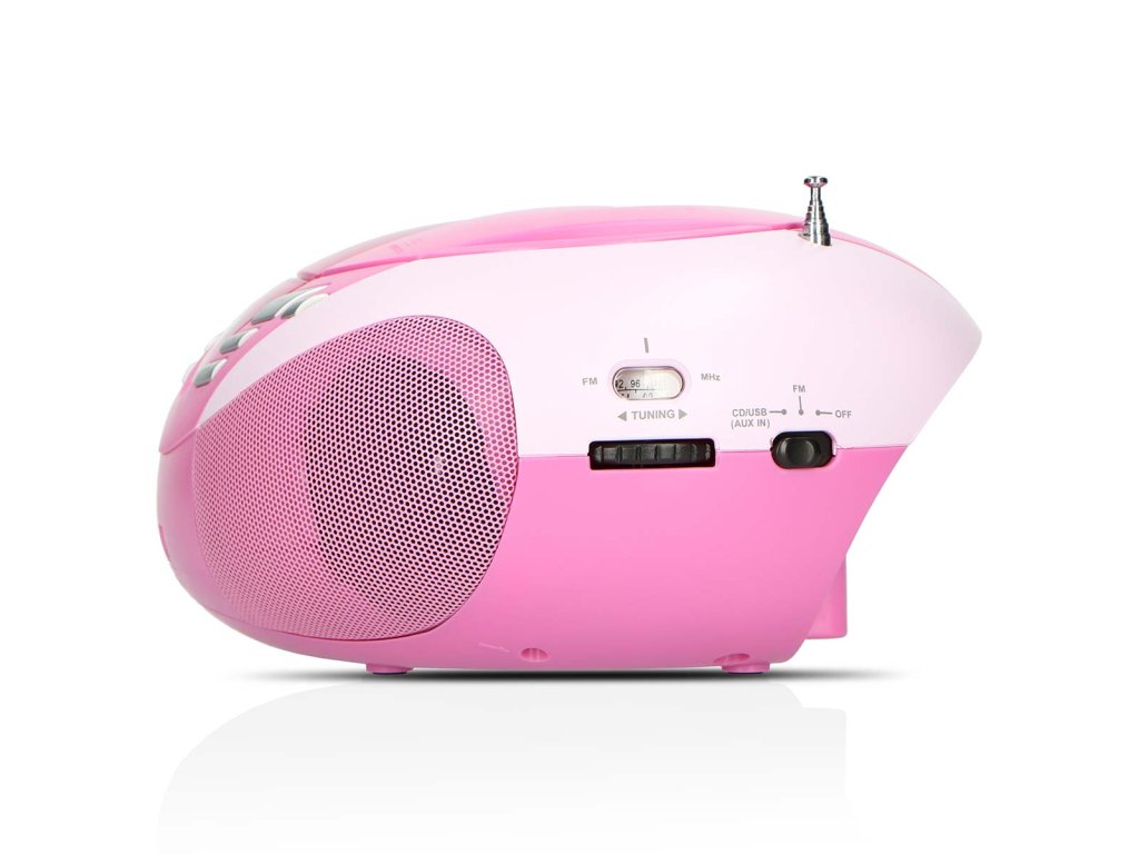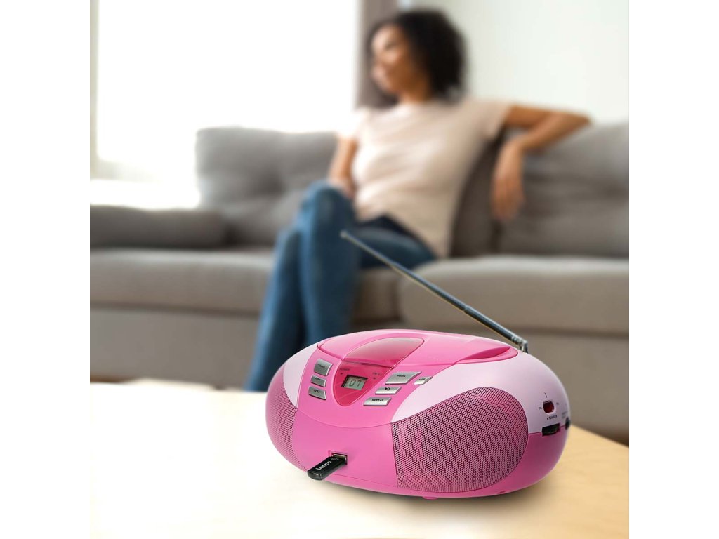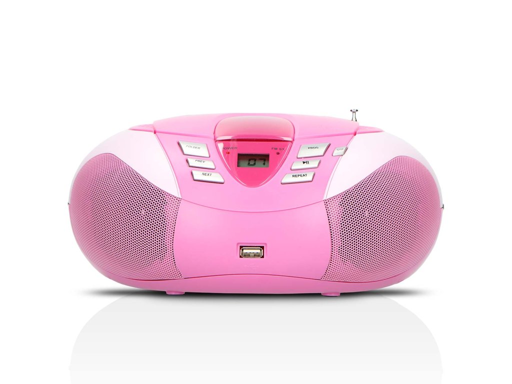 Přenosný FM rádio přehrávač CD a USB Růžová